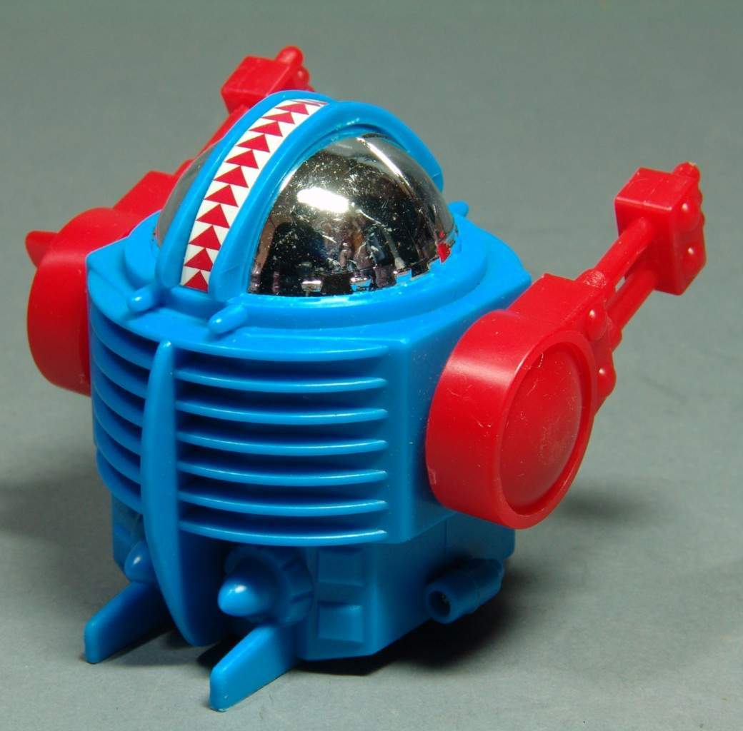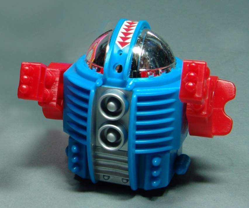 This 3 inch tall wind up robot with wind up arms that unwind to propel and tumble the robot, was made in Japan in the 1970's by Mark Toys.