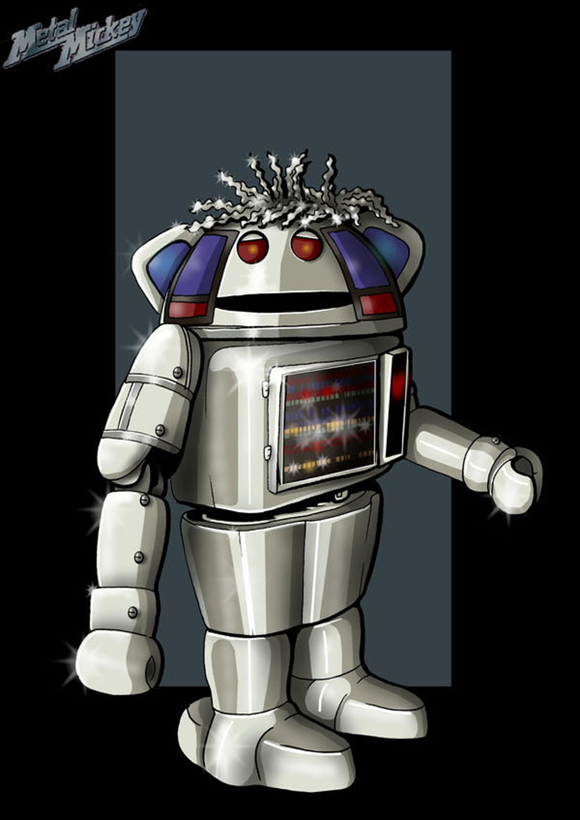 Metal Mickey, a robot character on UK children's television in the 1980s - Metal Mickey is a fictional five-foot-tall robot, as well as the name of a spin-off television show starring the same character. The robot character was created, controlled and voiced by Johnny Edward.