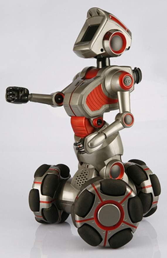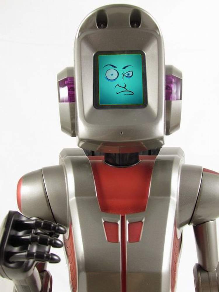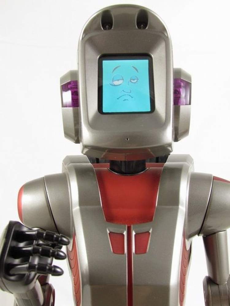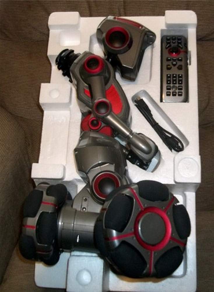 He Can move in all directions using a unique three wheeled mobile base; Tells stories, jokes, and fortunes and will talk to you too; Full color head mounted LCD screen display an animated face with synchronized facial expressions and sounds; Has several distinct play modes including: Bits, Crystal Ball, Fortune Cookies, Demo and others.; Detects and avoids obstacles and will let you know if he has fallen over or if his batteries are getting low on juice.