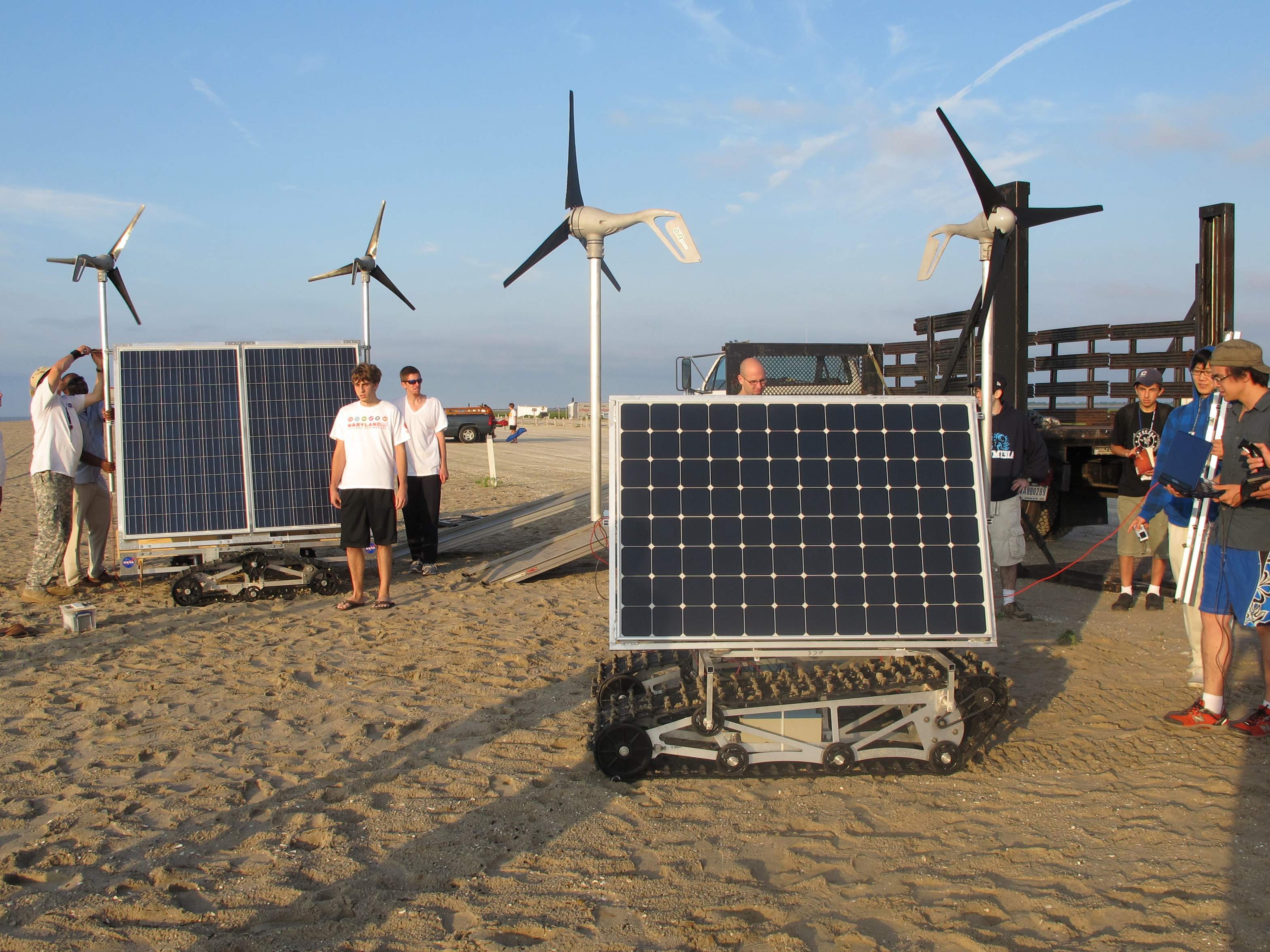 GROVER - [G]oddard [R]emotely [O]perated [V]ehicle for [E]xploration and [R]esearch, in a nutshell, is a solar-and-wind-powered, caterpillar-tracked rover that carries a ground-penetrating radar device. It is designed to roam alone for months at a time measuring the thickness of the Central Greenland Ice Sheet, which is about the size of Texas. “The problem with sending people is that they run out of food and fuel too fast,” explains “NASA Mike” Comberiati, who runs the internship. Someday, GROVER will crawl across frigid Greenland at up to 3 mph, 10 hours per day, for 4 months. NASA Mike and his interns are working with NASA cryosphere researchers Lora Koenig and Hans-Peter Marshall on the project. (Koenig is based at Goddard; Marshall is at Boise State University in Idaho.
