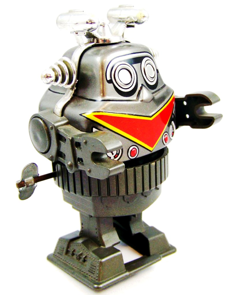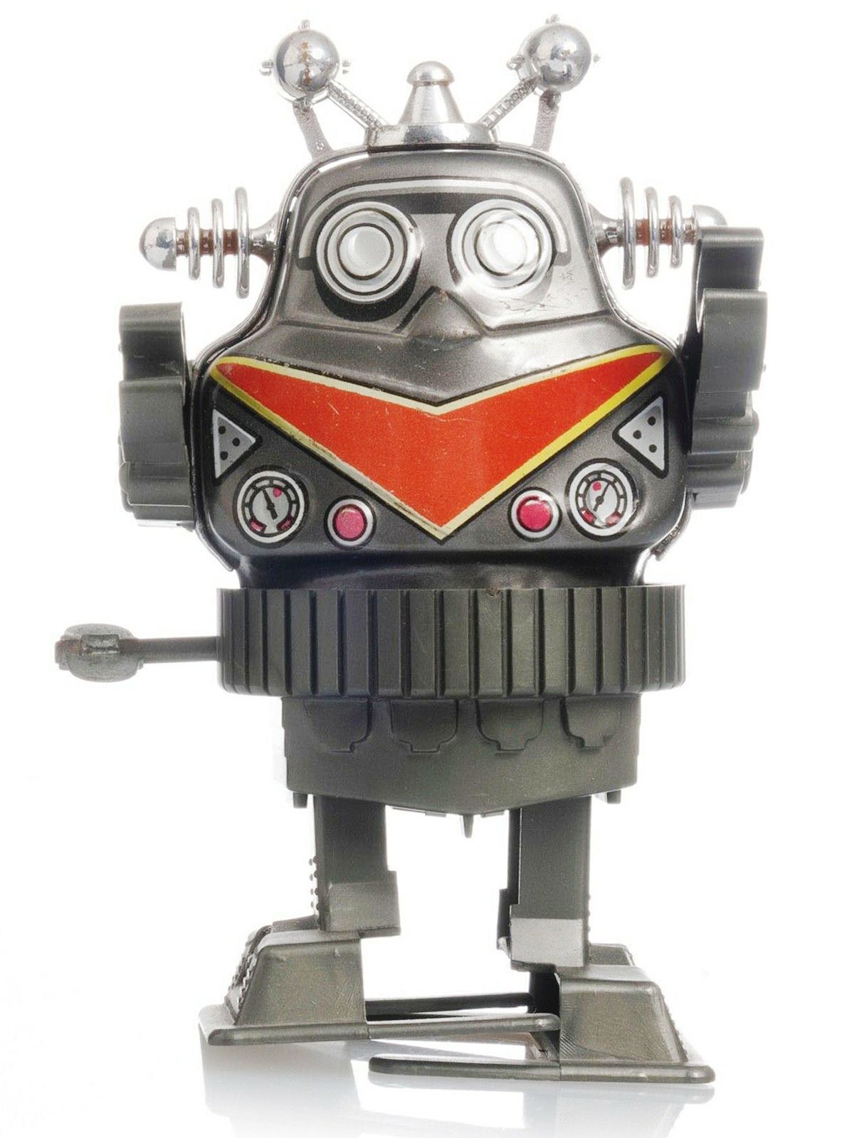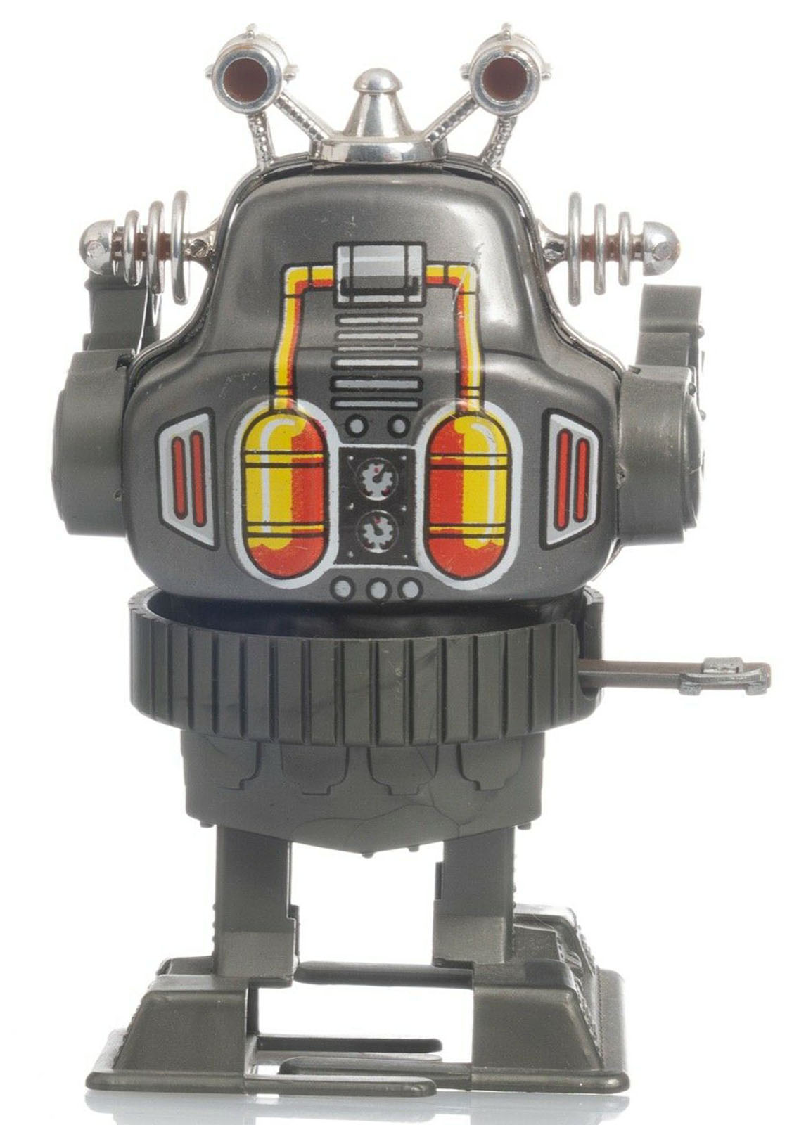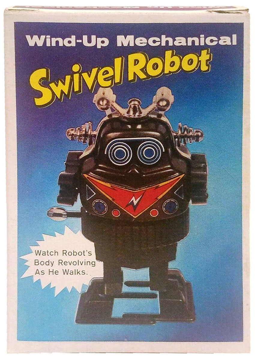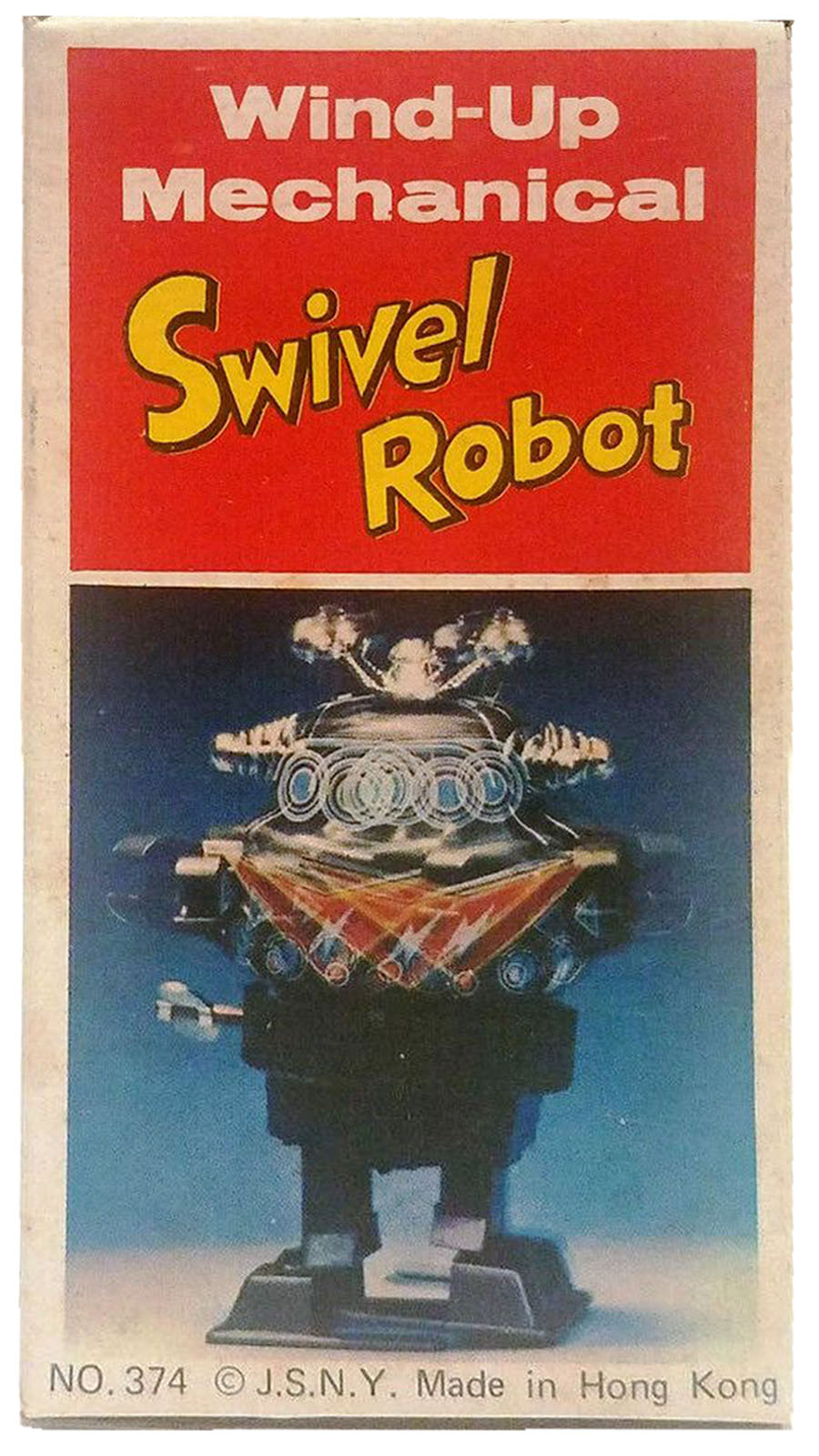 Wind-Up Mechanical Swivel Robot No. 374 , Made in Hong Kong - Watch the robot body revolving as he walks.