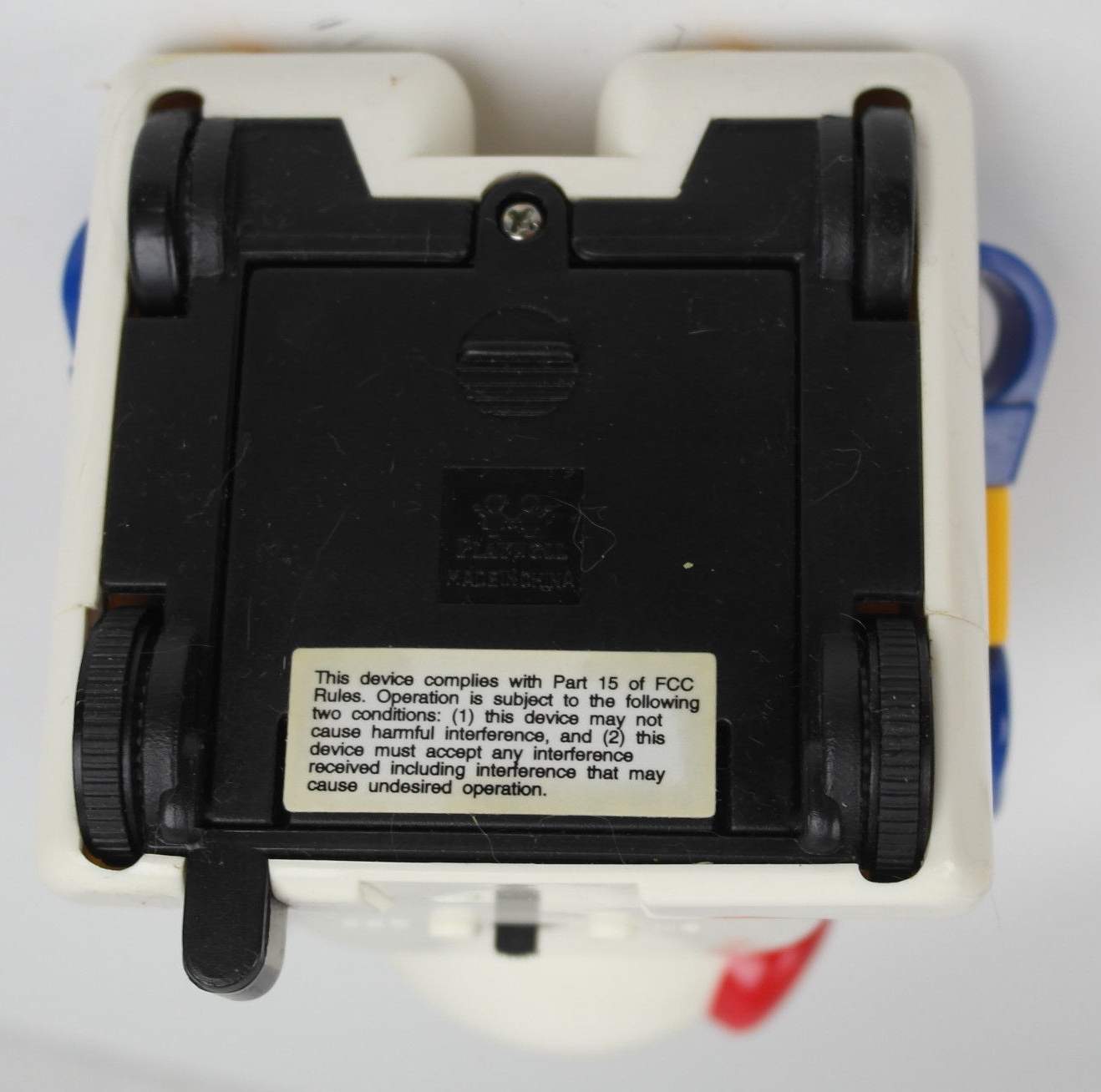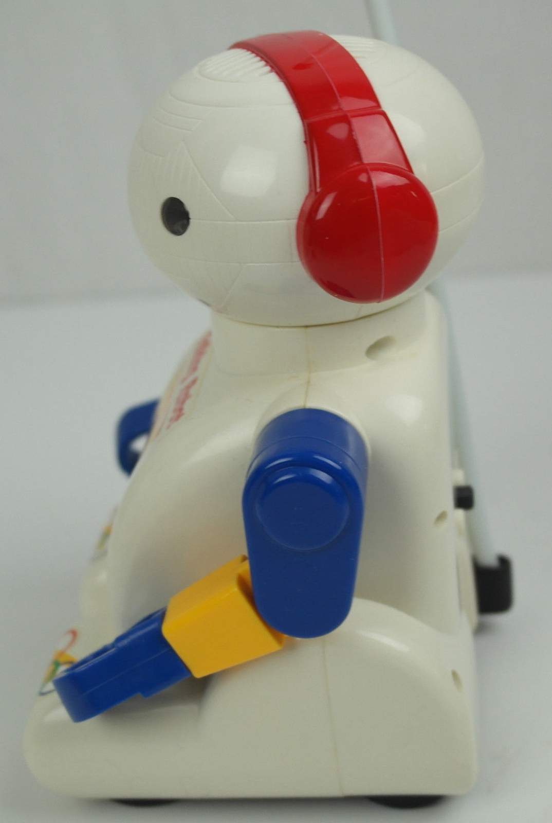 RC Talking Robot by Playwell - To enable the toy to receive the radio signal, turn on the switch at the bottom of the toy. To make the toy go forward, press and hold down the button on the controller. For turning and changing direction, release and re-hold the controller button down so that the toy spins in place, then let go when the toy is pointed in the desired position ( this will cause the toy to stop spinning). Press the button again and the toy will go forward. The head turns from side to side and the robot speaks one of five different phrases as it moves. To deactivate the toy, turn off the switch at the button.