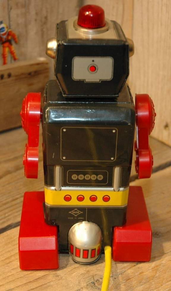 U-5 Robot ® by Daiya ® - It features remote control battery operated action with steerable forward and backward walking movement and light on top of the head. About 8” tall, made in the 1960s made in Japan. The following are Credits and Links : https://vintagespacetoys.com/http://alphadrome.net/