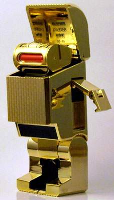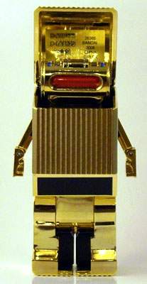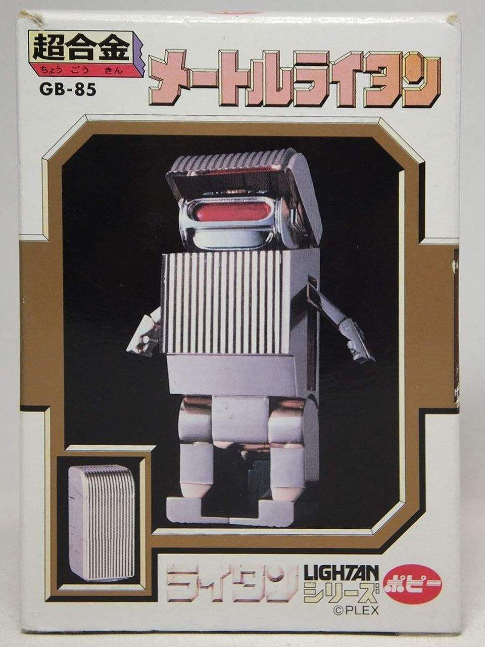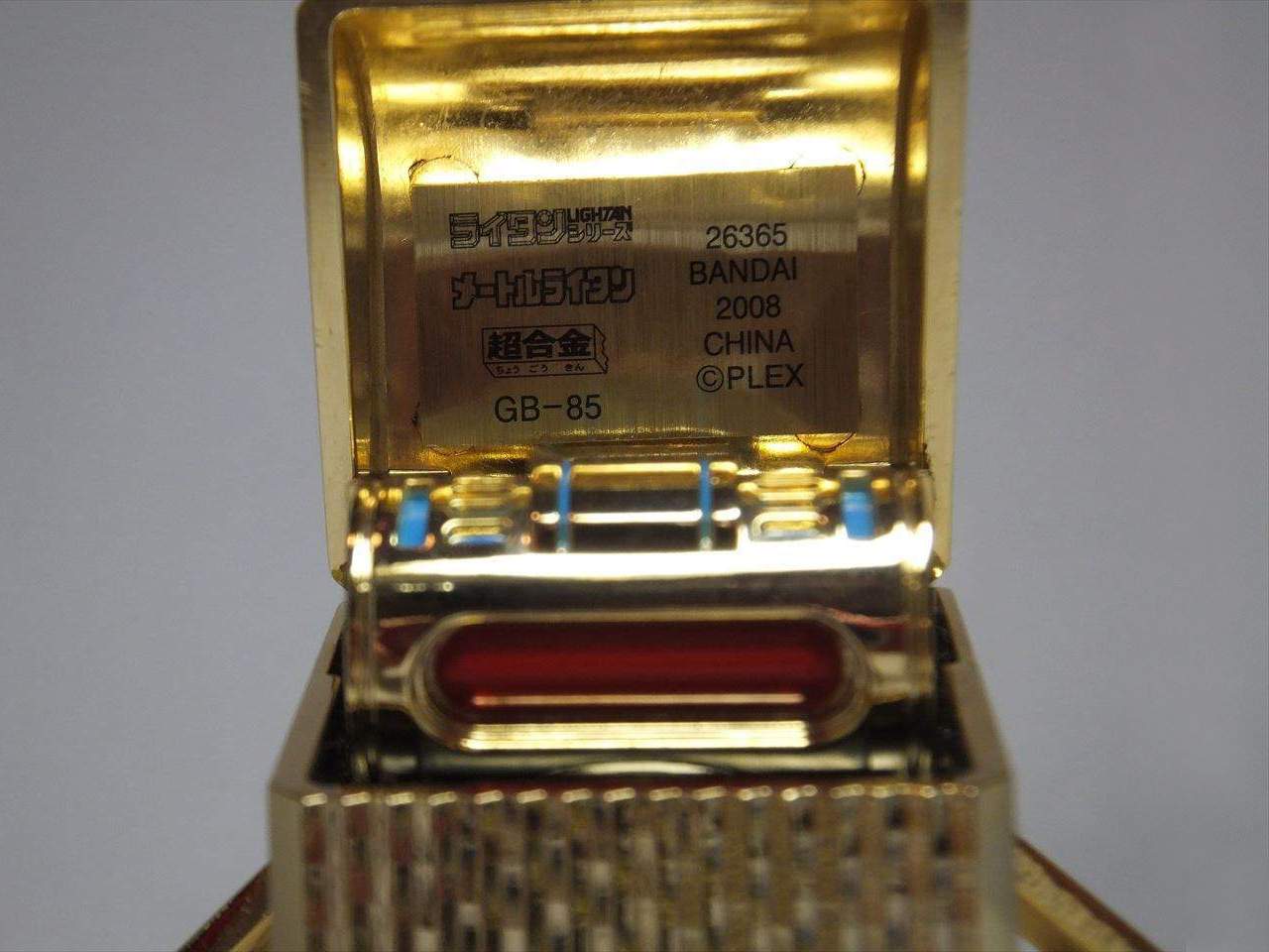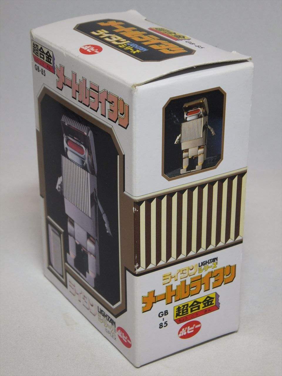 Golden Warrior Meter Lightan Transformer Chogokin Robots GB-85 - This is an release "Golden Lightan," the leader from the Japanese anime series Ogon Senshi Gorudo Raitan (Golden Warrior Gold Lightan). When not transformed into a robot he measures approx. 61 mm x 39 mm x 25 mm. Under his feet it reads GB-37, Popy, 1981, Japan, and in Japanese: Chogokin, Crystal Cut, Lightan and Tatsunoko Productions.