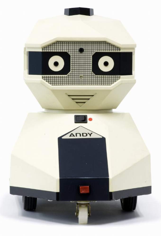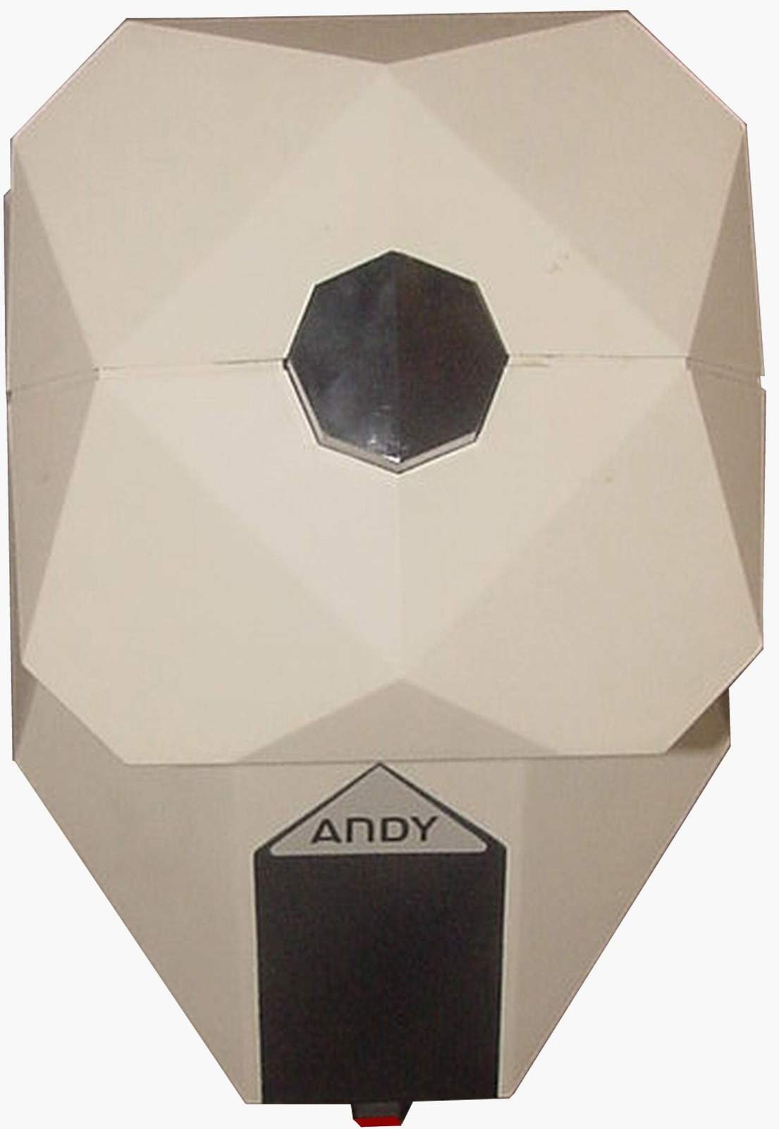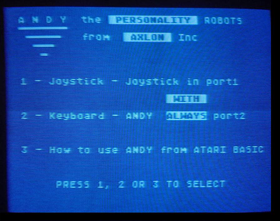 Atari ® Androbots ® Atari Andy ® Robot uses a Nine (9) Pin plug that connects to the # 2 Joystick Port to interface with the Computer. Direct Joystick Control is available Via Port 1, Control can also be handled through a series of instructions in BASIC or The Included disk software Includes a "Personality Editor" that lets Non-Programmers set up robotic behavior patterns by using English, Logo-Like, or BASIC-like commands. This information is brought to you through the Courtesy of : Atari ® Atari Andy ® Robot