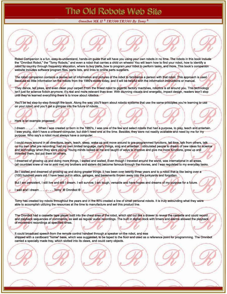 Omnibot MK II ® TR5500/TR5503 By Tomy ® | Previous | 1 | 2 | 3 | 4 | 5 | 6 | 7 | Next |