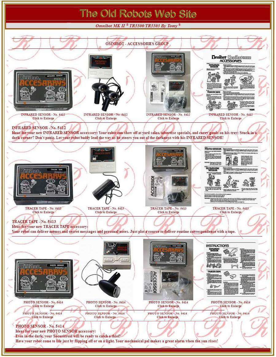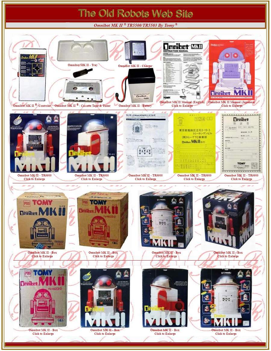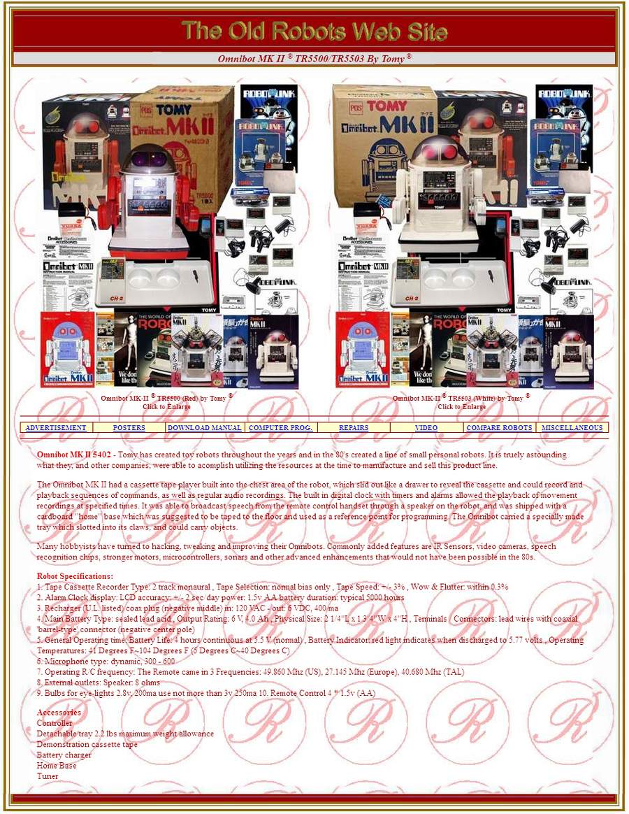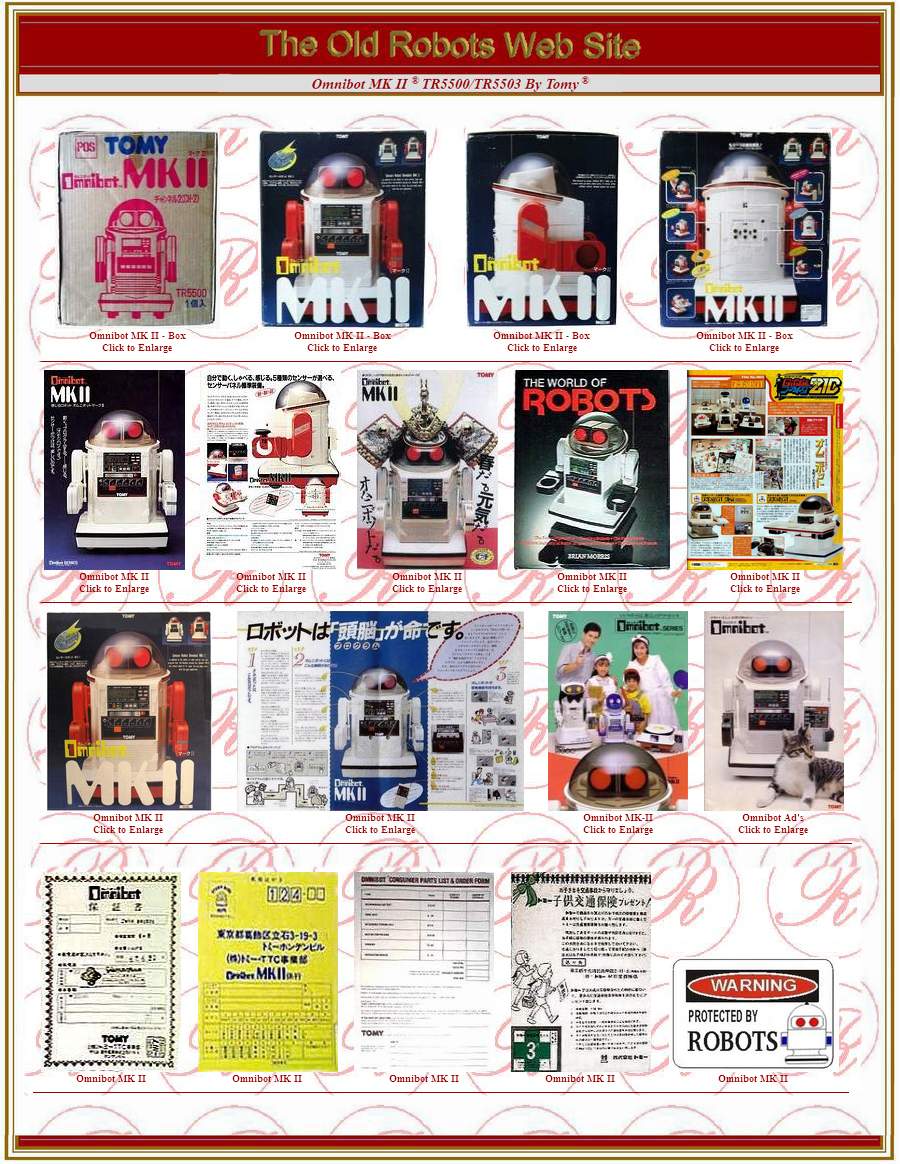 Menu Omnibot Omnibot MKII Omnibot 2000 Hearoid OOM Robie Sr Omni Jr Robie Jr Omnibot Jr