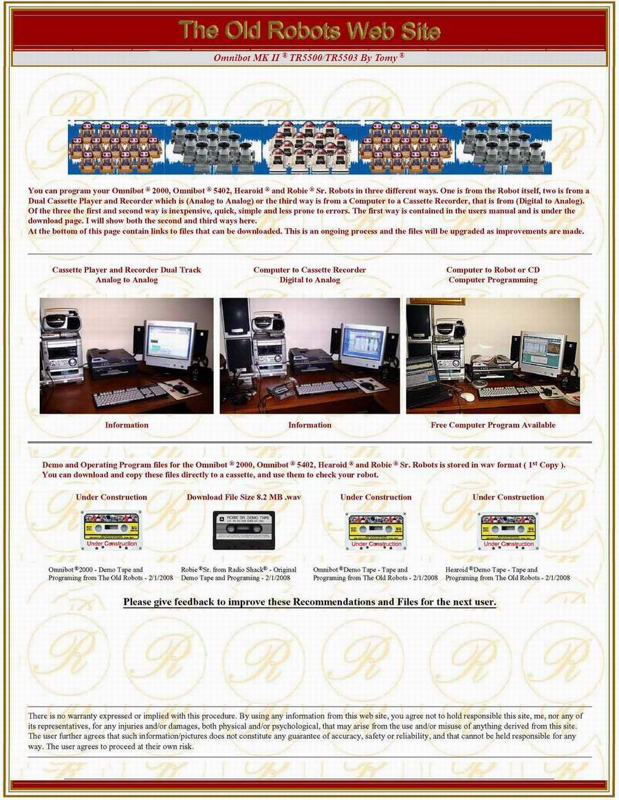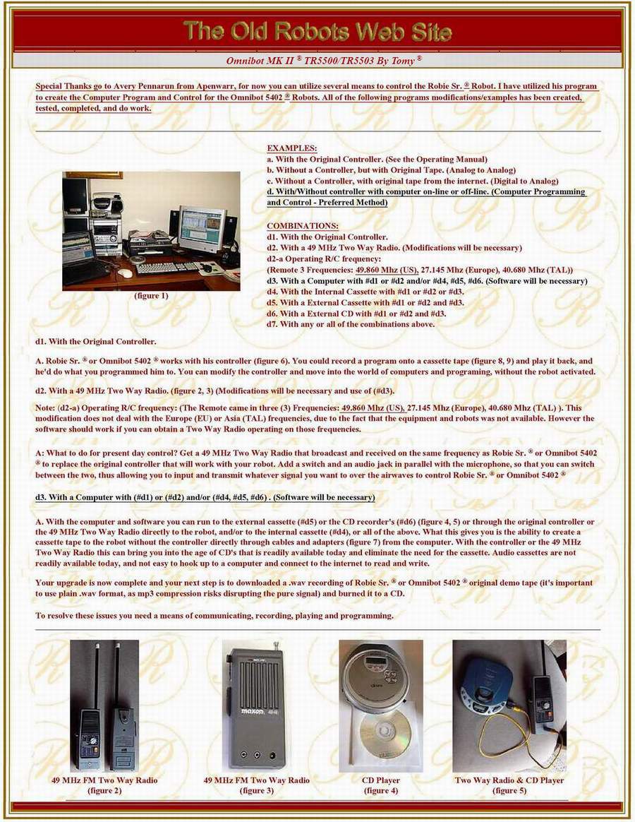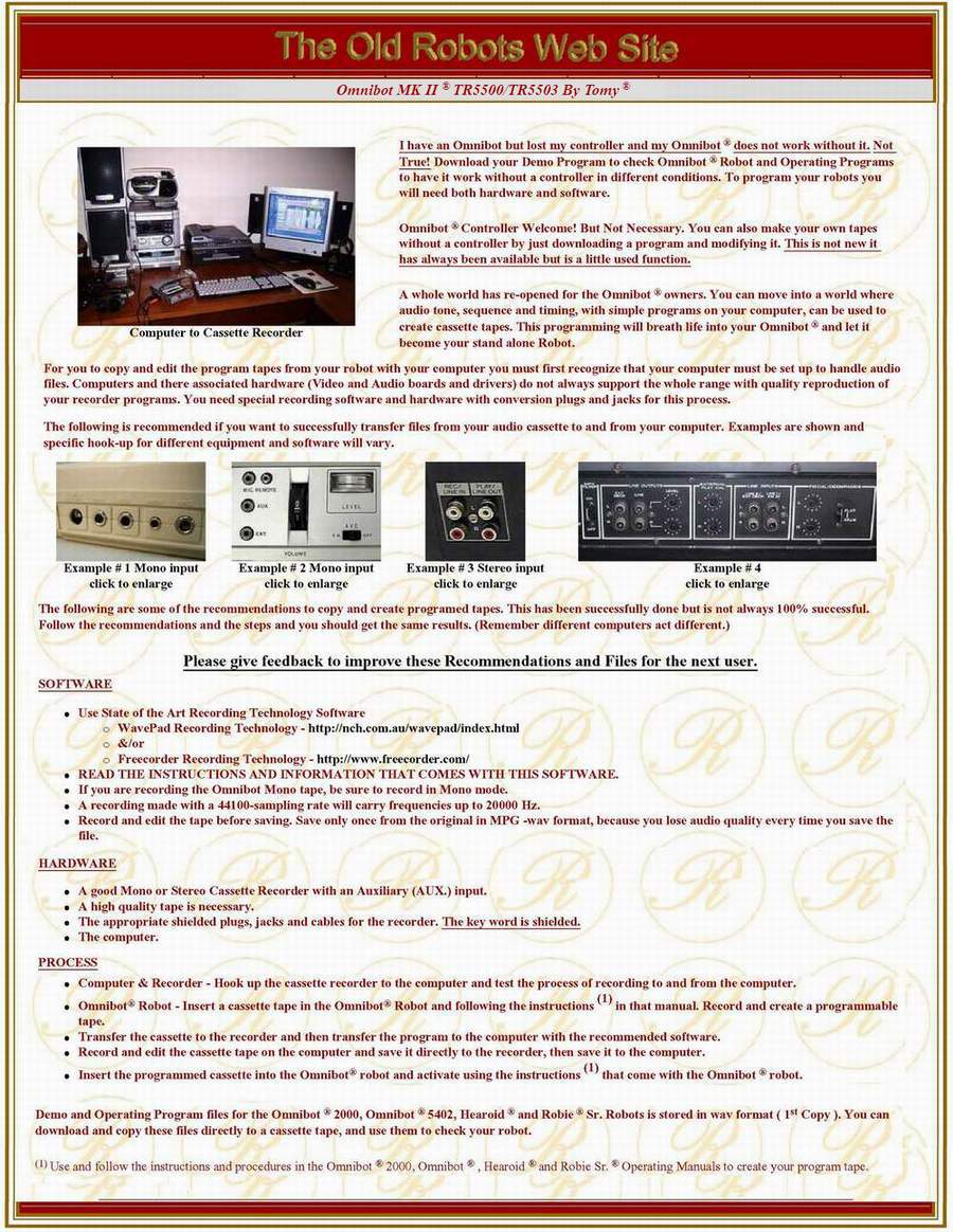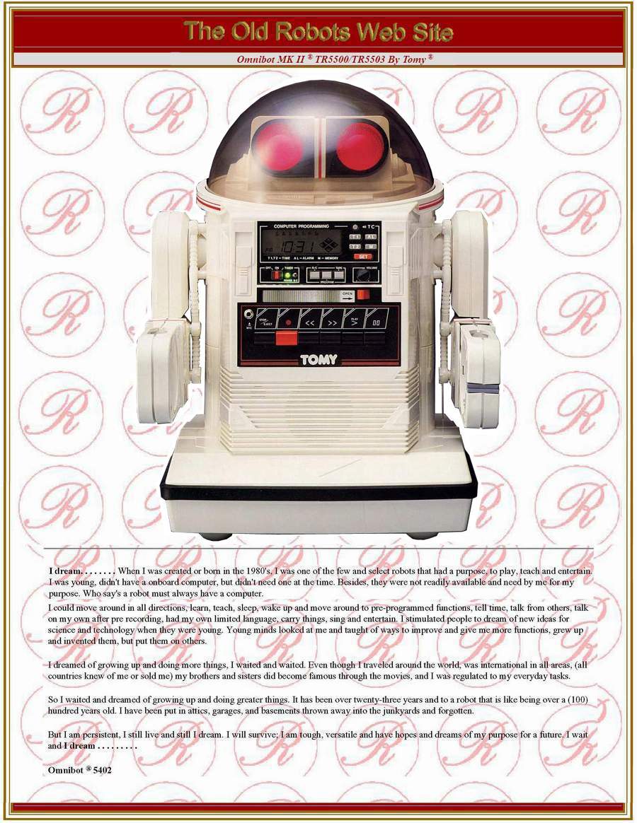 Menu Omnibot Omnibot MKII Omnibot 2000 Hearoid OOM Robie Sr Omni Jr Robie Jr Omnibot Jr