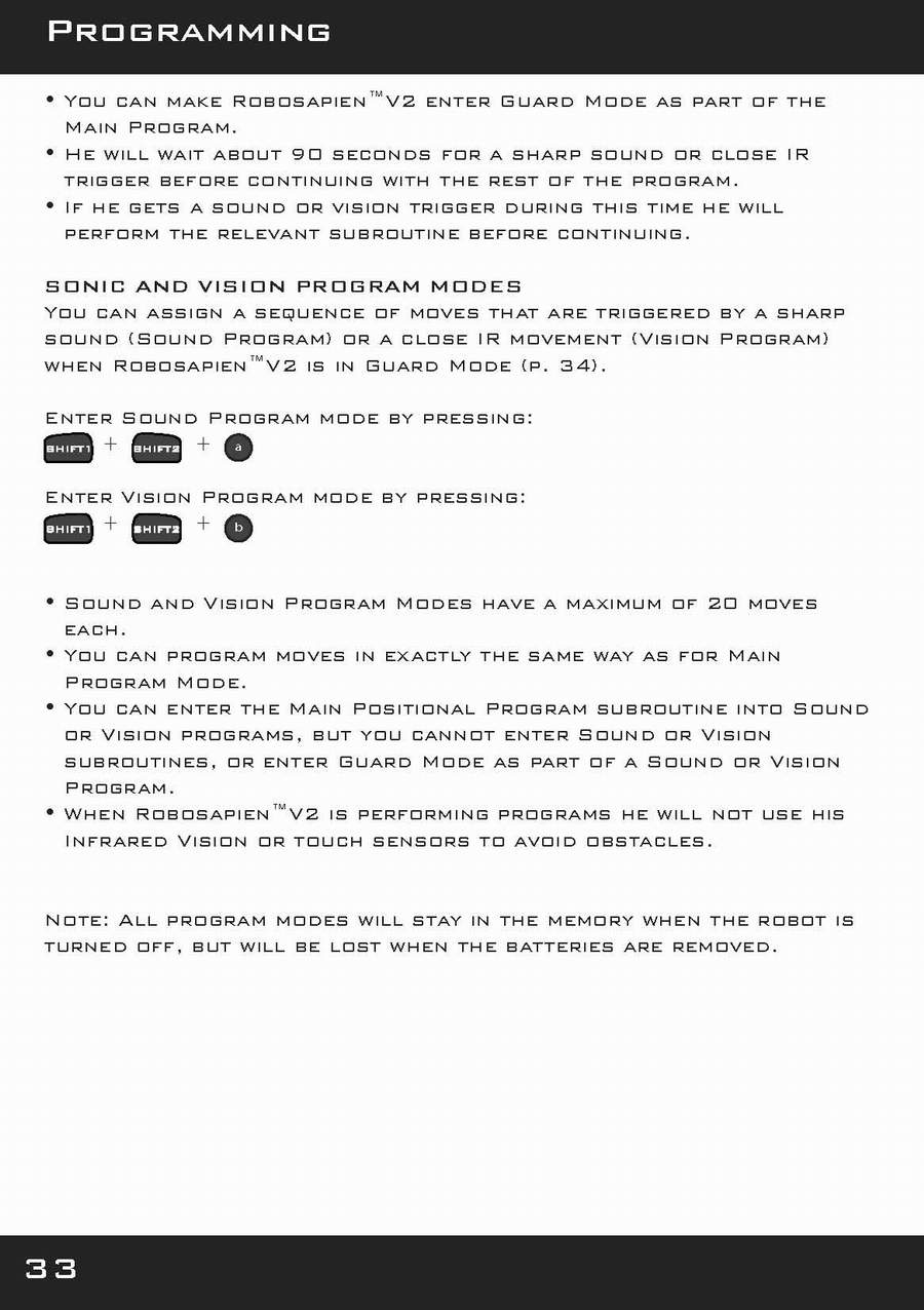 | See : HomerSapien / Spidersapien / Robosapien Robot by Wow Wee ® Detailed specific information for this Robot is contained in the Instruction Manual and is available on this site. The series of robots have similar functions, but the detail information can be different. This can also apply to the same model of manufactured robots, for later releases did vary with the robots. I suggest that you download the manuals for specific information. To Download Instruction Manuals Click On The Images. These files are large. They are Free. These files are as clean as I can make them, they all work for me, you download at your own risk. No Warranties Express or Implied. It is suggested that you do not Open The files in your browser window. Right Click on your mouse button and "Save Target" or "Save Link" to your computer. The file will or should start downloading/or ask you where to download to, and give you a window. All browsers will not work the same. |