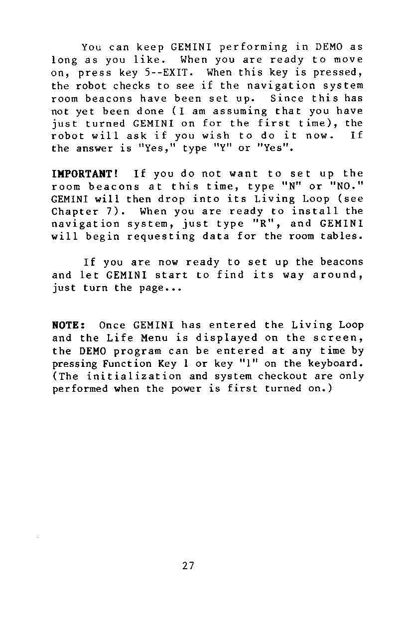 | To Download Instruction Manuals Click On The Images. These files are large. They are Free. These files are as clean as I can make them, they all work for me, you download at your own risk. No Warranties Express or Implied. It is suggested that you do not Open The files in your browser window. Right Click on your mouse button and "Save Target" or "Save Link" to your computer. The file will or should start downloading/or ask you where to download to, and give you a window. All browsers will not work the same. Detailed specific information for this Robot is not contained in the Users Manual and is available on the robotU web site. I suggest that you download the manuals for specific information from that site. Look to the robotU.com : web site for a lot more information, video, schematics etc.. on Gemini. |