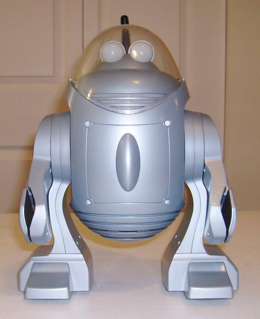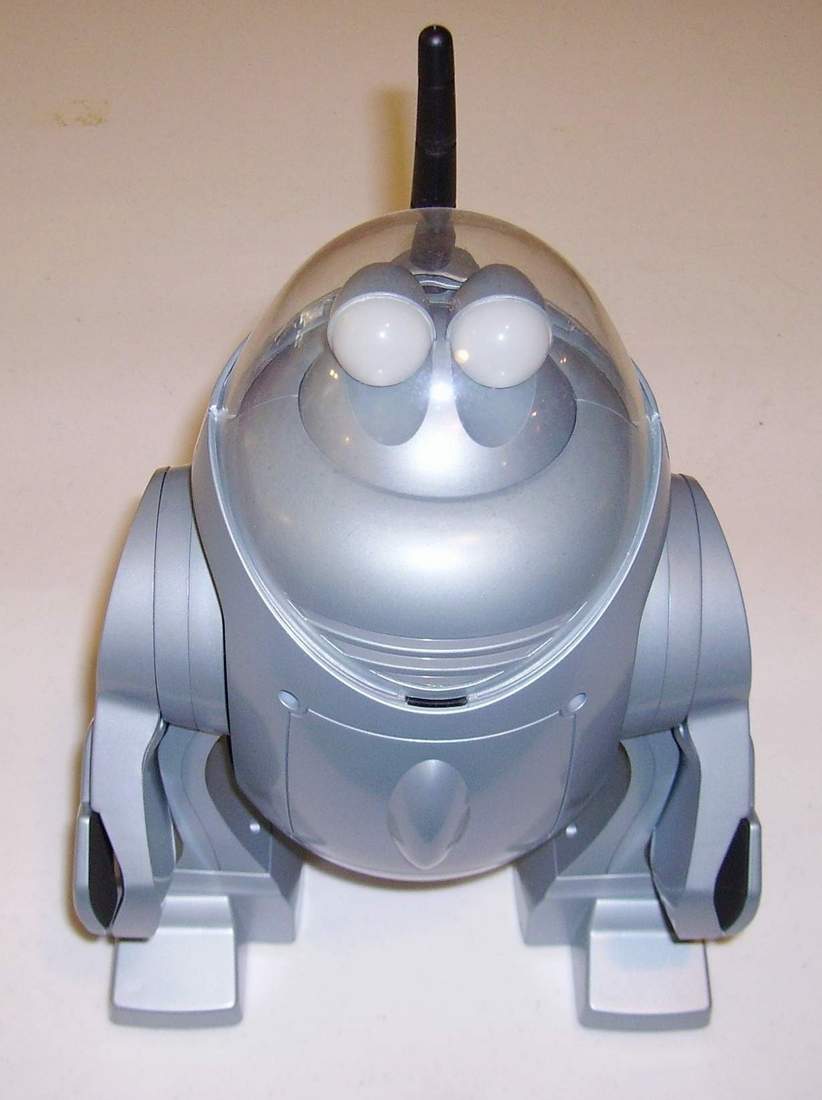 RoboCub® by Sharper Image ® - RoboCub® walks, talks, smiles and sings and comes in cool blue-silver metallic finish. RoboCub ® is an endearing little remote-controlled robot who's animated, fun, cute and captivating RoboCub walks, talks, smiles, sings, the lights of his LED mouth blinking expressively in sync with his quirky electronic voice he might say "Hello up there," or "You look familiar!" Guide RoboCub ® over smooth, flat surfaces by wireless RF remote control, press directional arrows to send him rolling along on hidden "feet" forward and back; right or left. Press the center of the remote to have RoboCub say any of dozens of unpredictable phrases from "I'm not lost; I'm just exploring" to "Oh, it's you again."