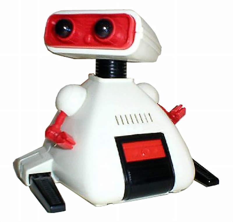 The battery operated Dingbot is a good communicator, emitting little squeals of excitement as he shakes his head, smiling as he moves about changing direction as he bumps into objects. He is a fast traveling robot who bumps into walls and obsticles, chatters, turns his head, speeds off in another direction carries his own floor plan in his arms. He is a funny robot who is slowly learning the meaning of walls. He's dingbot.