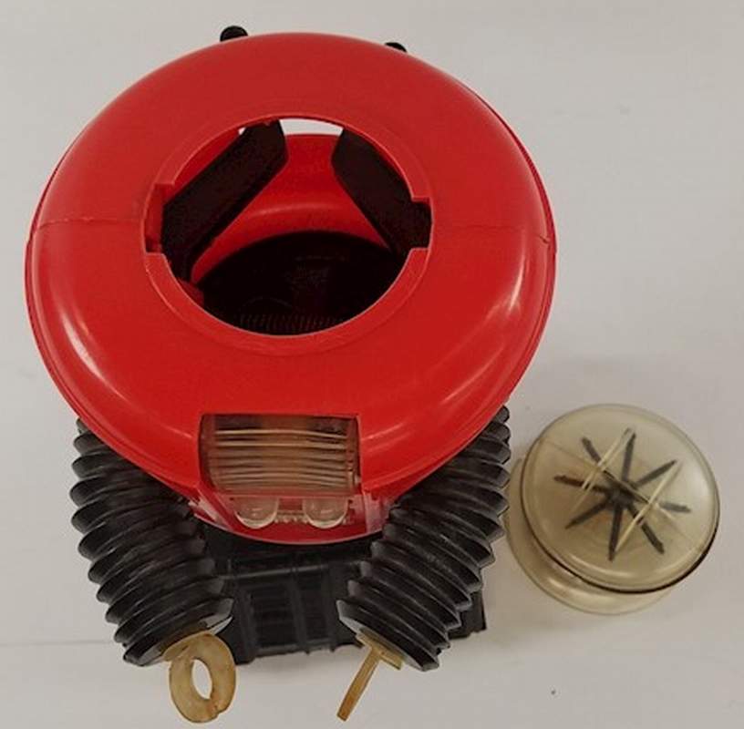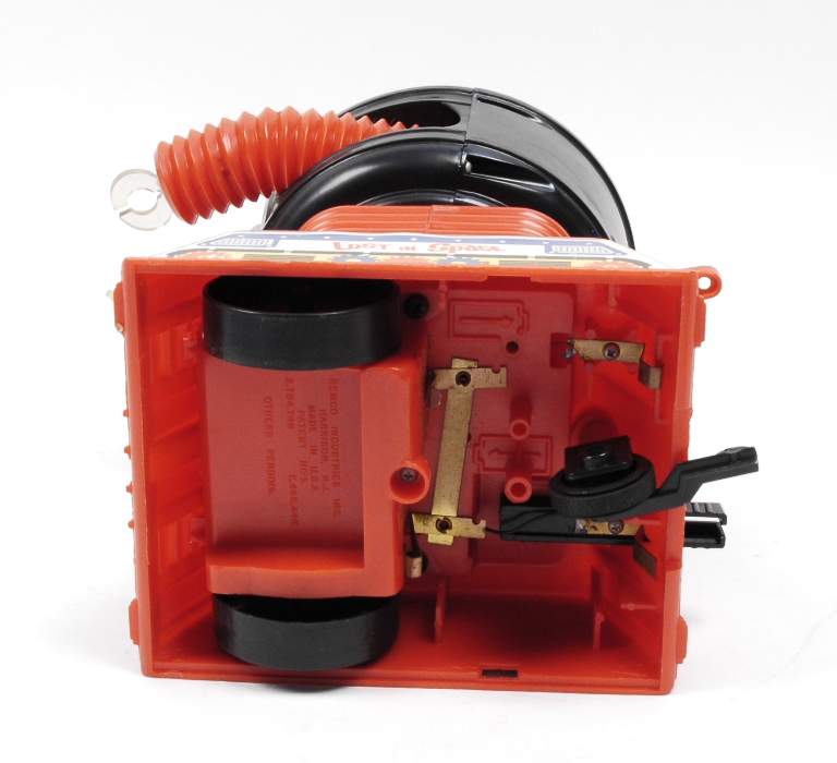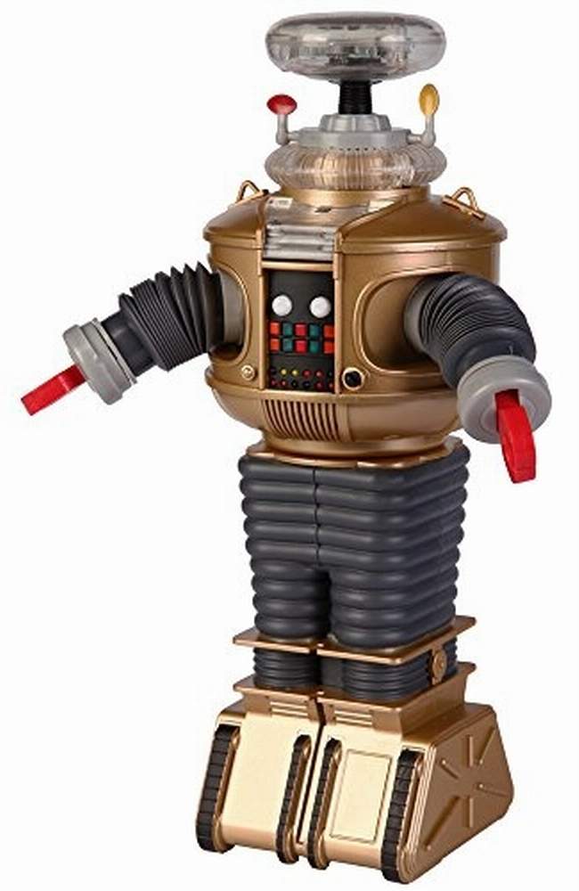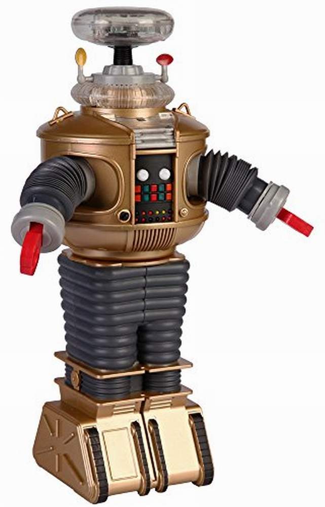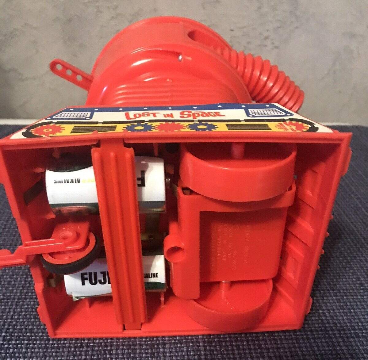 Remco Lost in Space Robot. ; Copyright 1966 Space Productions. - A motorized 6x9x12" tall plastic battery operated toy by Remco. Large plastic static robot based on the TV series. A large range of color combinations are known. This is the color variety where upper body and bottom of robot are in red. Legs and arms are blue. Through the Courtesy of : a l p h a d r o m e and The Robot Hut and "Uncle Oodie's" Collectibles