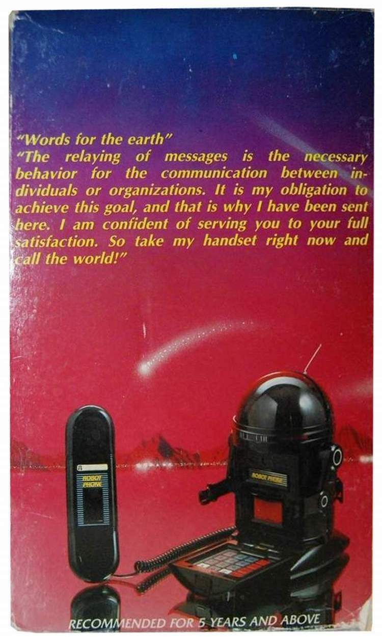 | ROBOTIC PHONE Robot Telephone Spica 1985 Taiwan, a battery operated telephone made in Taiwan in 1985 for Spica USA. Part no. SR-006. A 9in tall -23 cm- plastic domed robot telephone with detached hanset. Black, Red, Silver, White: Attractive, sleek looking design & FCC approved. - - - Touch: Sensor dialer, - - - Reset: Cancel and dial again, - - - Redial: Last number redial, - - - Hand set: Attractive design for children, Durable plastic construction, Pulse dialing, Built in buzzer. |