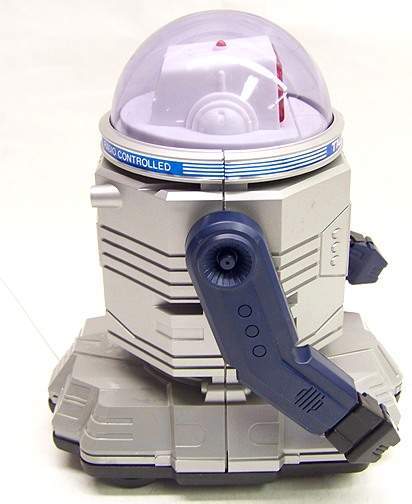 Robie the Robot ® - Comes complete with original remote microphone controller.Talking Bot by Robocom - 6 commands which are voice activated - Go, Stop, Reverse, Lights (makes main "eye" ligh blink on/off a few times), turn left and turn right. Comes complete with original remote microphone controller. Measure 9" tall. |