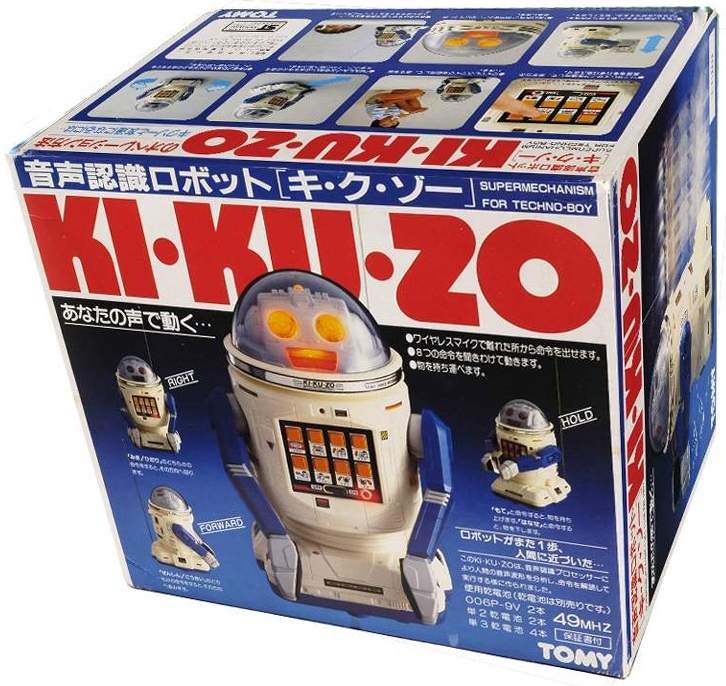 Mister Robot ® Verbot ® KI-KU-ZO ® - 5401 by Tomy ® : The programmable robot! Performs 8 functions by remote control. Your VOICE is his command! 8-command memory! Program each command with your own secret code word. Dazzling personality! He'll blink and smile at your request. Forward & Reverse! Direct his every movement. Turn right & turn left! Verbot goes in any direction. Pick up & deliver objects! Train Verbot to be your mechanical messenger. Wireless remote control unit (microphone)! Control him from a distance.