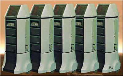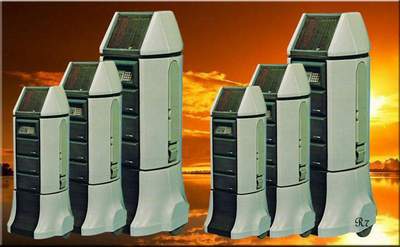 While GENUS ® is fully self-contained and needs no peripherals or external computer to operate, you can expand its capabilities by using the internal RF link and your compatible home computer. Write programs in BASIC from your terminal or from the optional keyboard. Call up information on the built-in CRT and command GENUS ® , depending upon optional packages, to perform these specific, programmable demonstrations: GENUS ® has Security, Speech, Entertainment Games, Self-Charge, Vacuum, Handshake, Arms for lifting and Voice recognition.