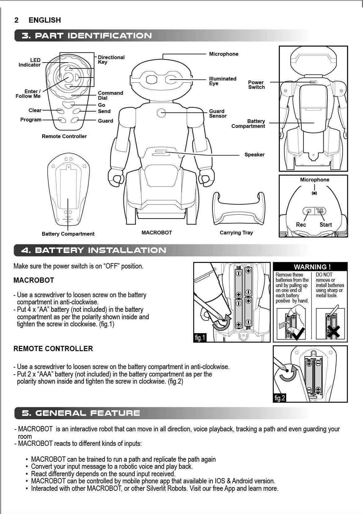 Detailed specific information for this Robot is contained in the Instruction Manual and is available on this site. The series of robots have similar functions, but the detail information can be different. I suggest that you download the manuals for specific information.