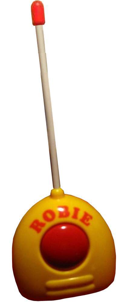 Robie the Robot 60-2583/60-2570 by Radio Shack, Robie's head turns sideways when he moves. Function : Three Function Radio Controlled Robot, Easy to Operate, High Quality Plastic, Durable And Safe. Requires 2 "AA" and one "9V" batteries. |