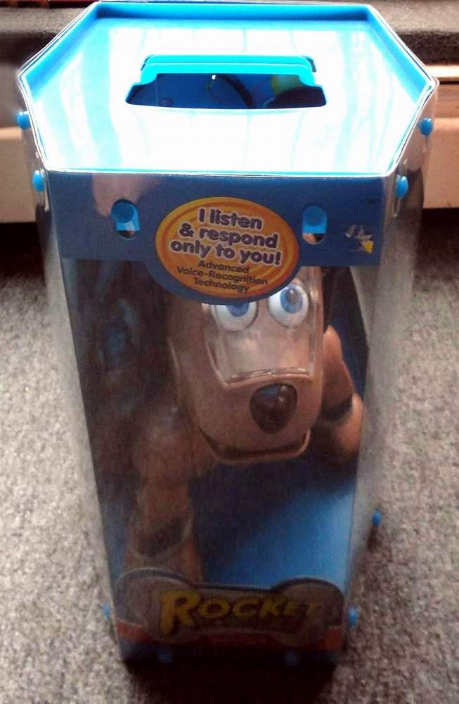 Some of the features of Rocket are: *Does tricks like sit, beg, bark.; *Amazingly expressive eyes.; *Pants, eats, barks and burps too.; *Scratches for fleas and wags his tail.; *Stands on his head and sings.; *Can sense and respond to your touch.; *Give him a new name and he will recognize it.