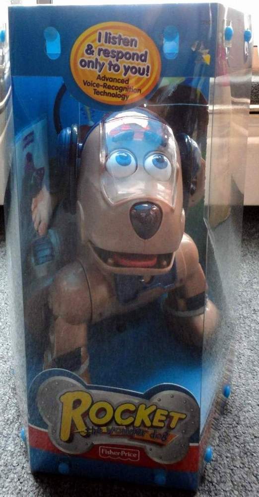 Fisher-Price's Rocket the Wonder DogRocket the Wonder Dog electromechanical robotic puppy, responds only to its owner's voice. An IC preprogrammed with motion sequences lets him walk, pant, scratch fleas, and move his eyes and eyebrows. Sensors on Rocket's legs, neck, and eyes track his position for each motion.