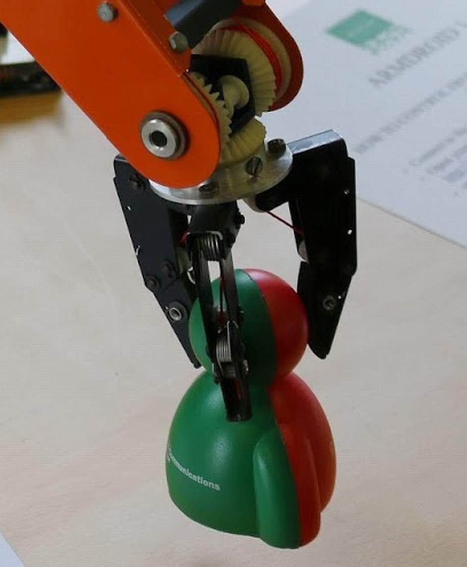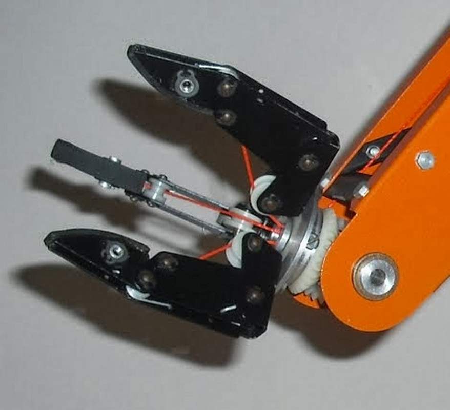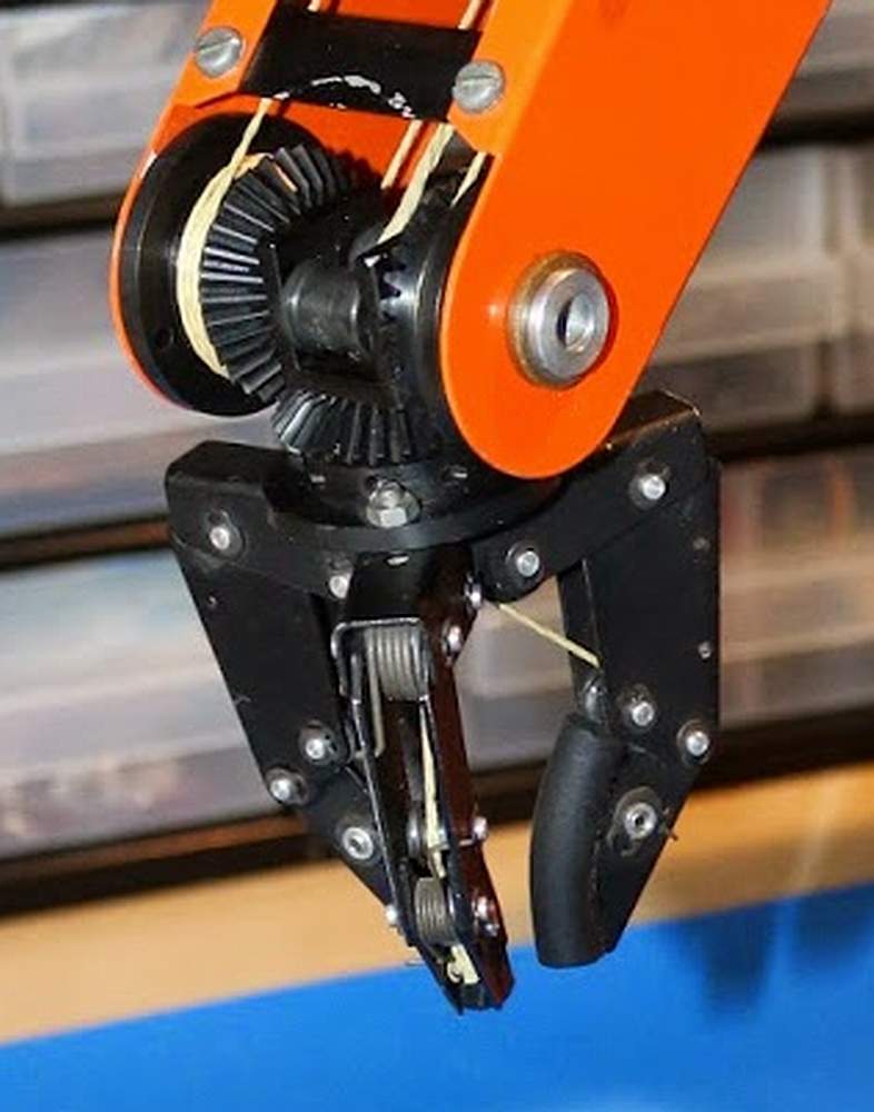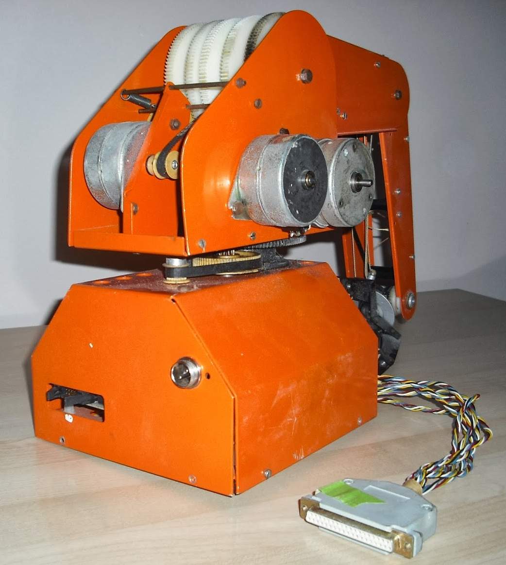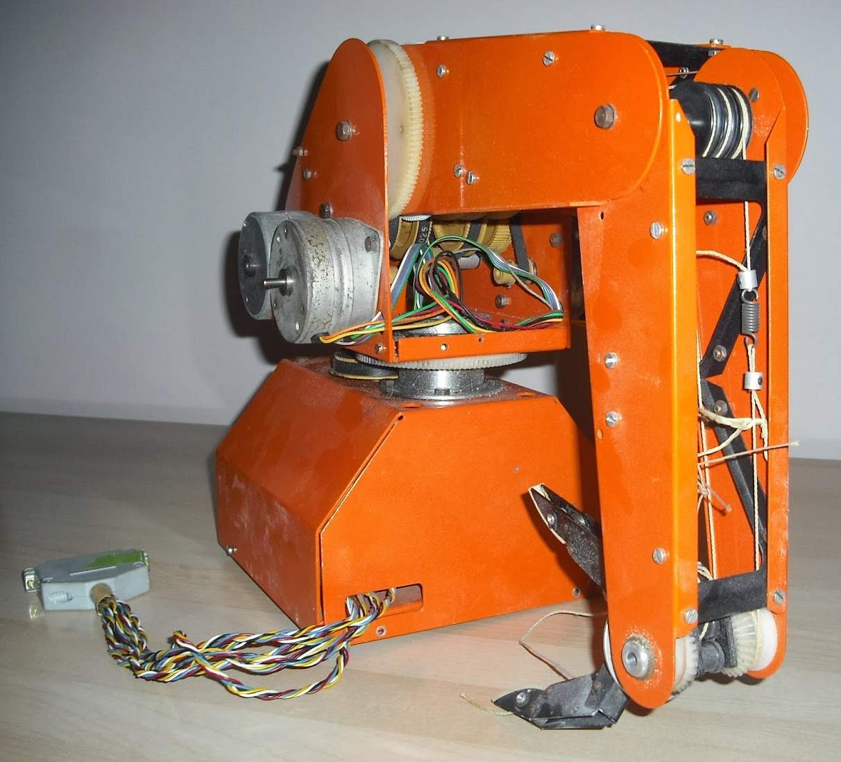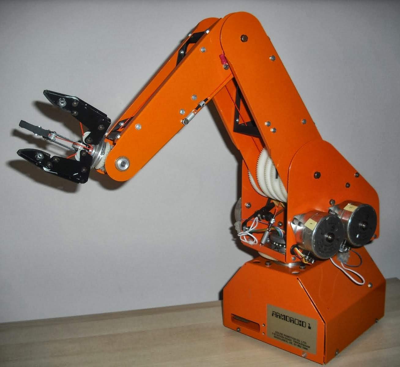 The ARMDROID feature is its parallelogram operation. Starting with the upper arm verticle, the forarm horizontal and the hand pointing downward, the sholder joint can be rotated and the forarm and hand will retain their orientation. The forarm can be raised and lowered and the hand will remain pointing downward. This feature can be important when picking and placing objects.