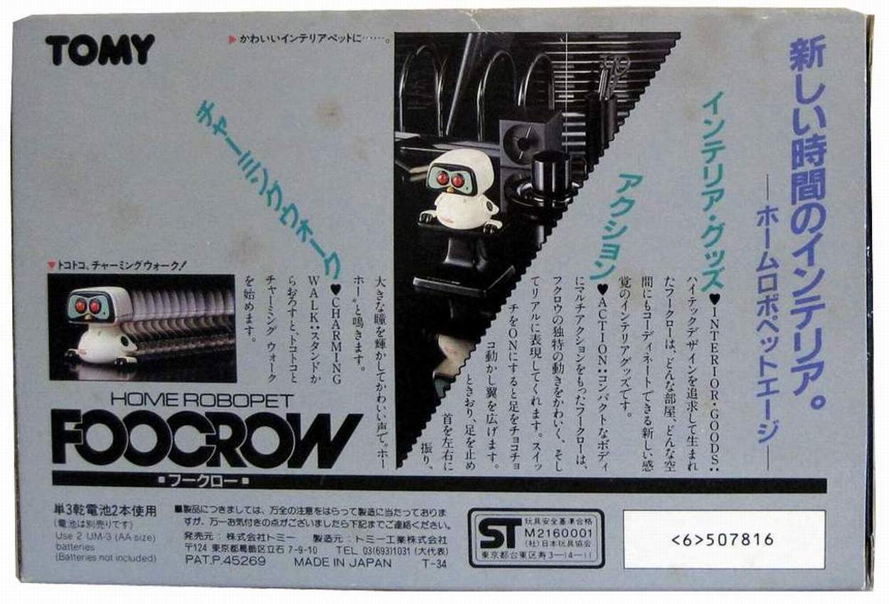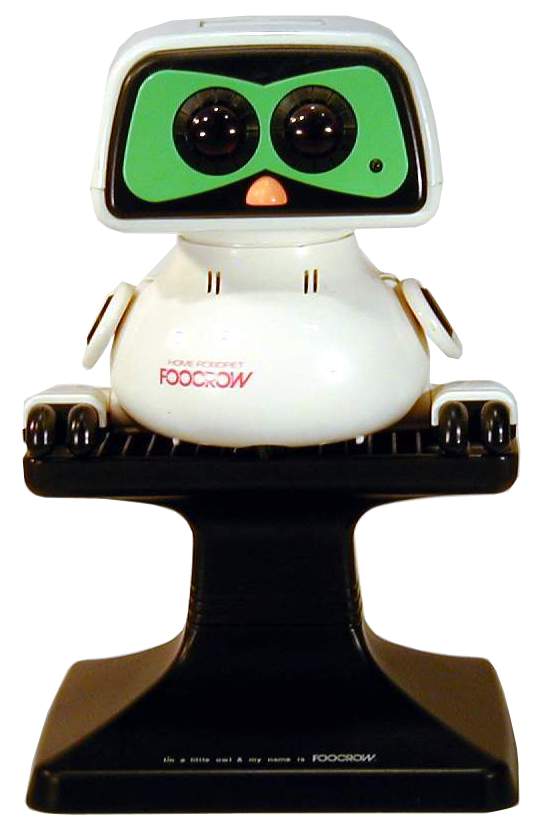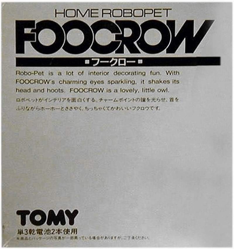 Hootbot ® ; Foocrow ® - the Robot Owl - #5406 Tomy ® - 1980's. - He "hoots" while his large red eyes blink, his head turns, his wings flap, his tail wags, and his feet clack up and down on his perch. He appears to be excited about something. Hootbot ® - Tomy ® . Please see the following Links : https://www.youtube.com/Hootbot Robot Repair