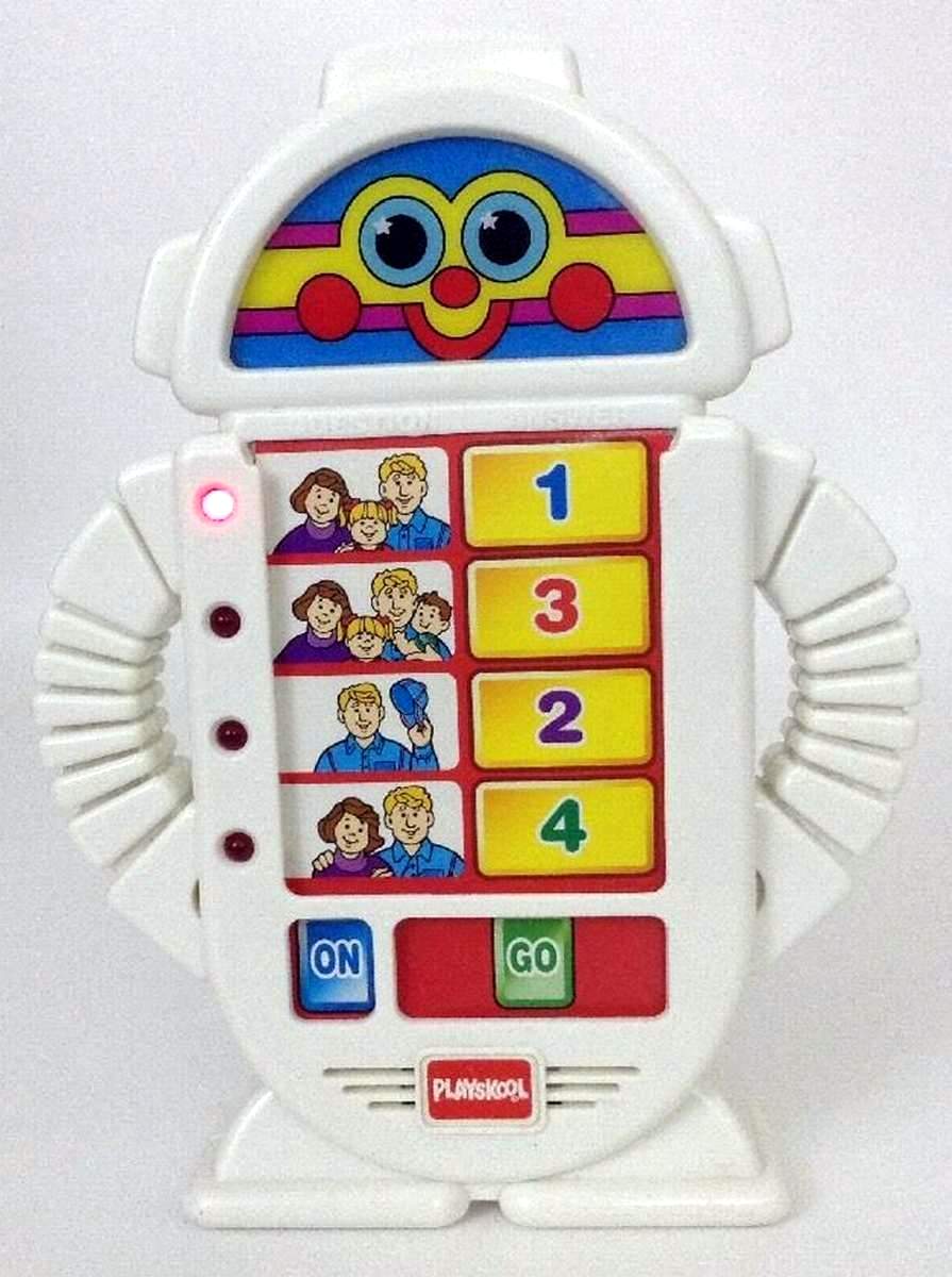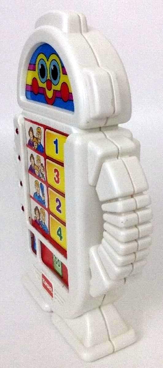 On-The-Go-Alphie ® Robot - "Talking Alphie" The talking alphabet machine, the electronic friend teaches basic learning skills! ; Talking Alphie makes learning fun, with a friendly voice that guides children through different activities. Kids learn counting, matching, problem solving, sequencing and more skills as they play. They love to hear Talking Alphie's responses to their answers - happy words for right answers, encouraging words for wrong answers. Talking Alphie also plays familiar melodies, and his smiling, light-up face adds to the fun! He even shuts off all by himself! Alphies faces lights up as he teaches the alphabet.