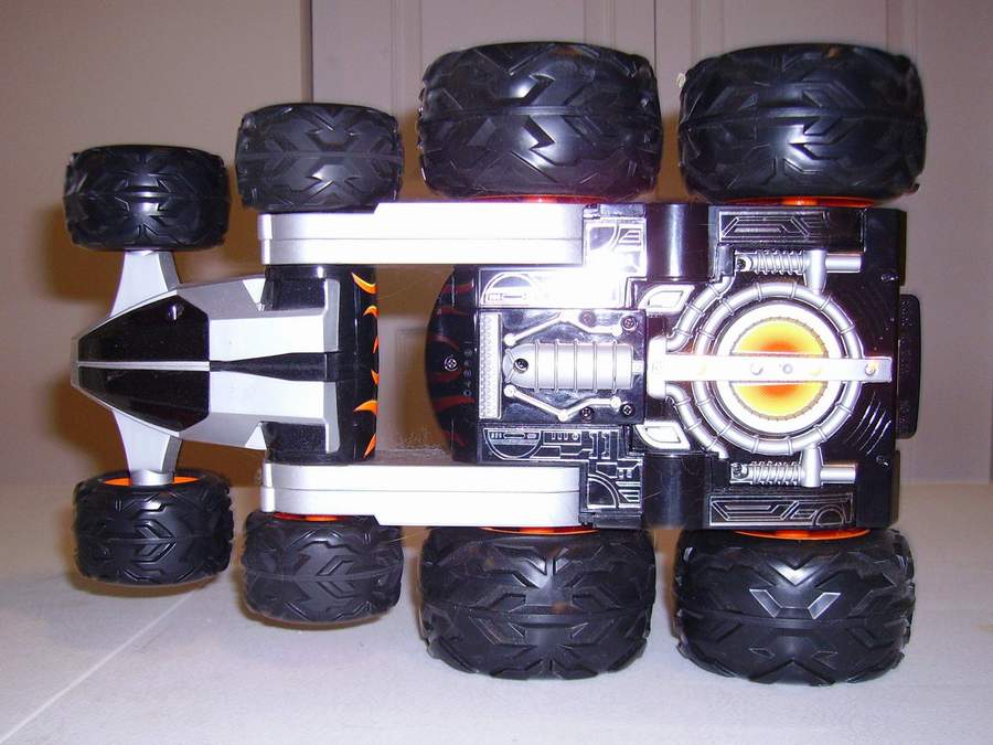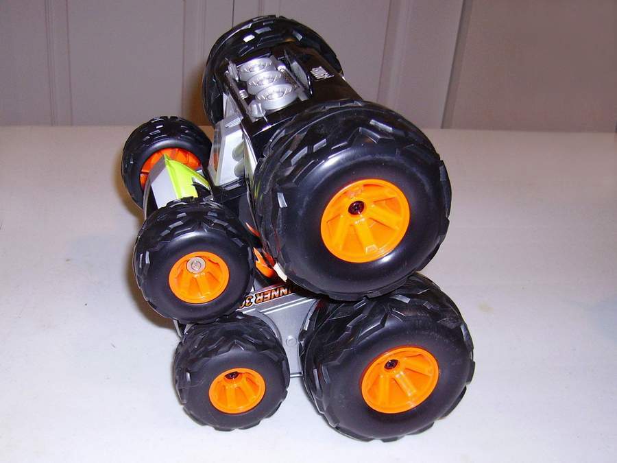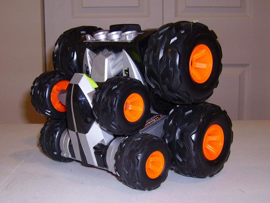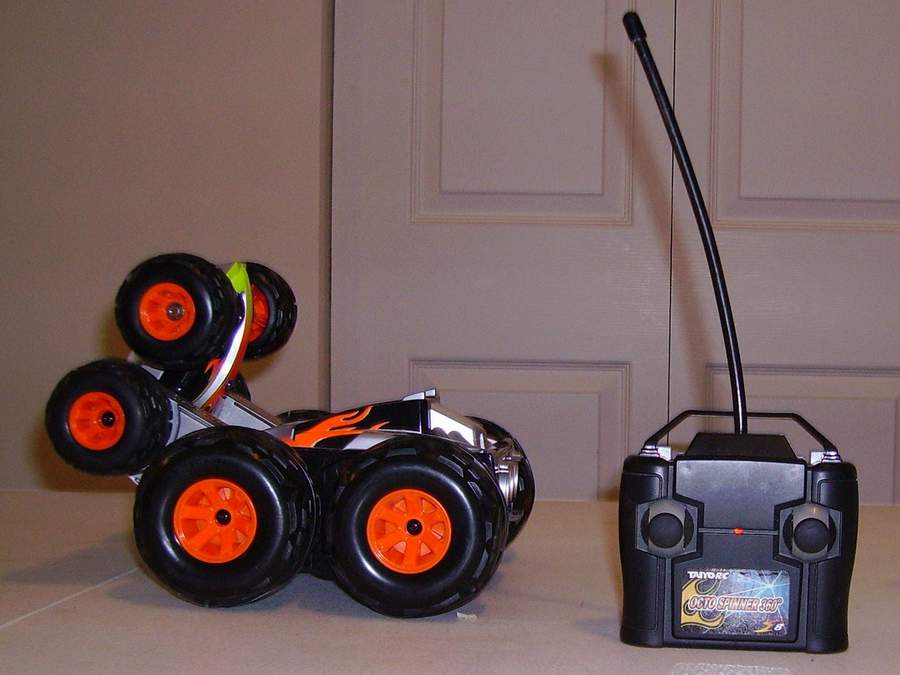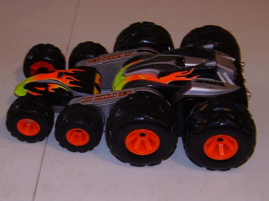 Taiyo Octo Spinner ® 360o by Talyo Kogyo Ltd. ; is a unique, 8-wheel-drive design allows vehicle to spin, flip and fold up on itself, open position delivers high speed on any surface, Folded position allows for amazing stunts, it performs 360° spins, super wheelies, spiral spins, extreme flips and rolls, built-in, super bright LED lights illuminate the bottom, 49 MHz frequency controller. High performance, 9.6V battery pack and charger. Octo Spinner ® 360o by Talyo Kogyo Ltd. |
