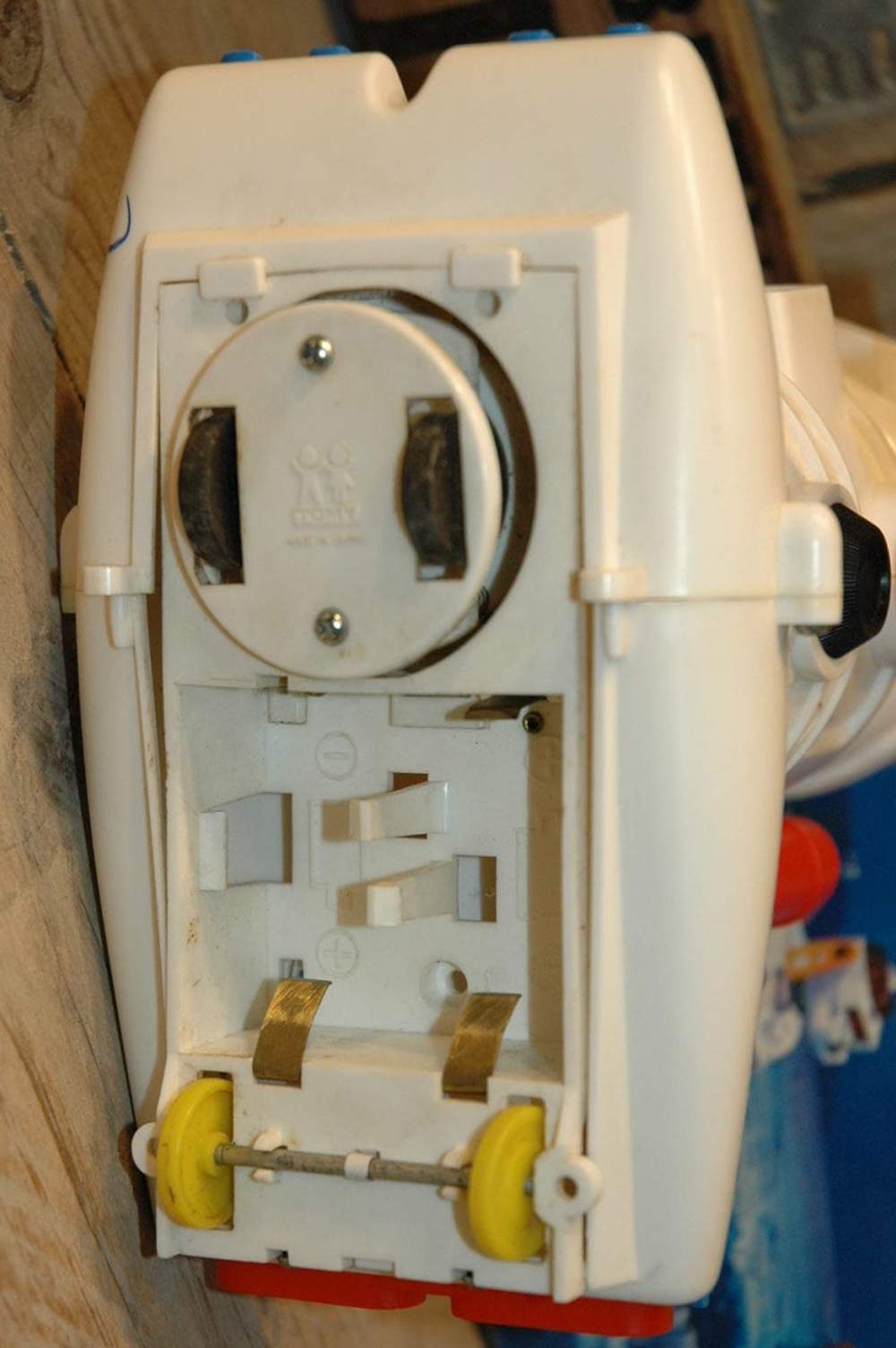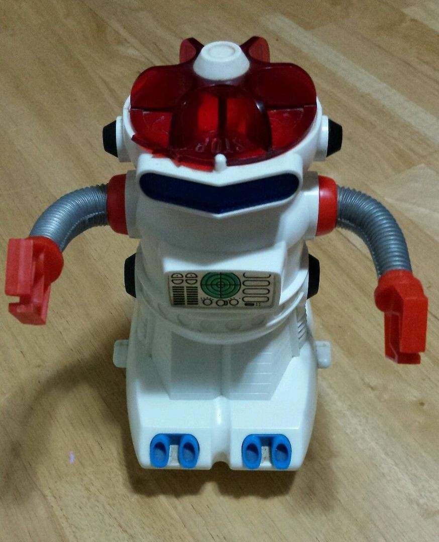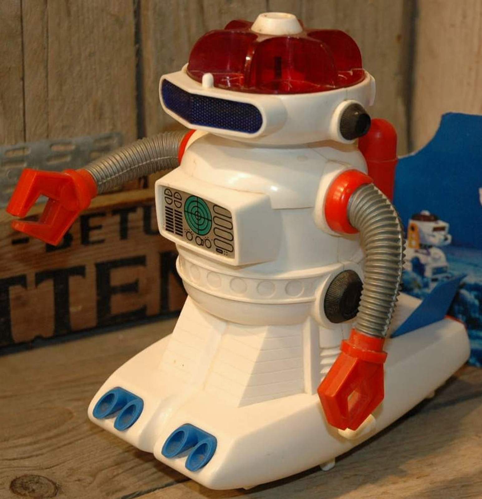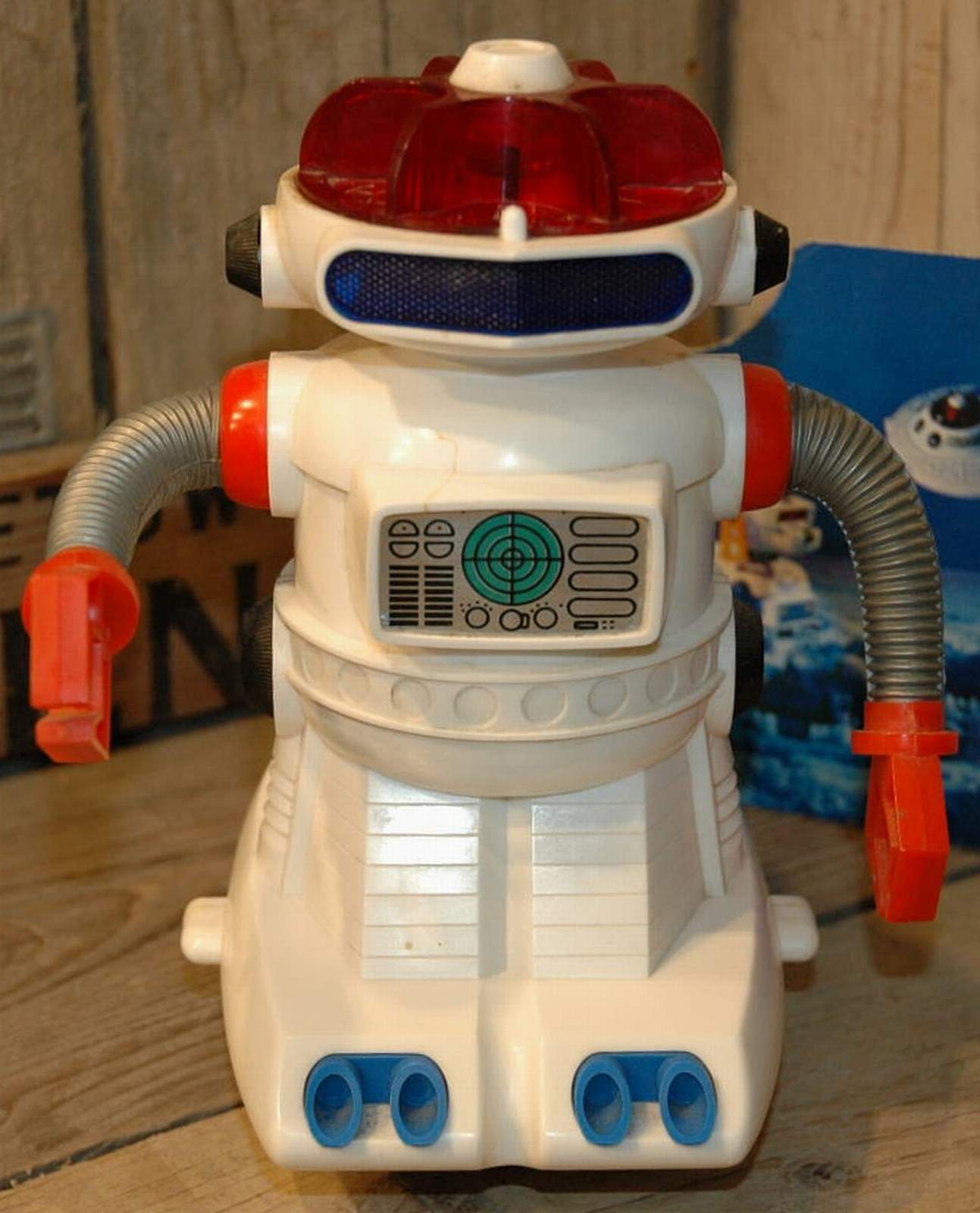 | Space Robo by Tomy - 1969; Space Robo is made out of durable platic with six (6) programmeble actions with the dial on top of the robots head. This was pretty unique for a robot in this timeframe. There is a couple of other variations of this robot, in blue, green and grey. Made in Japan by Tomy.