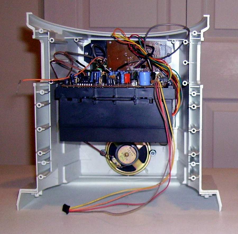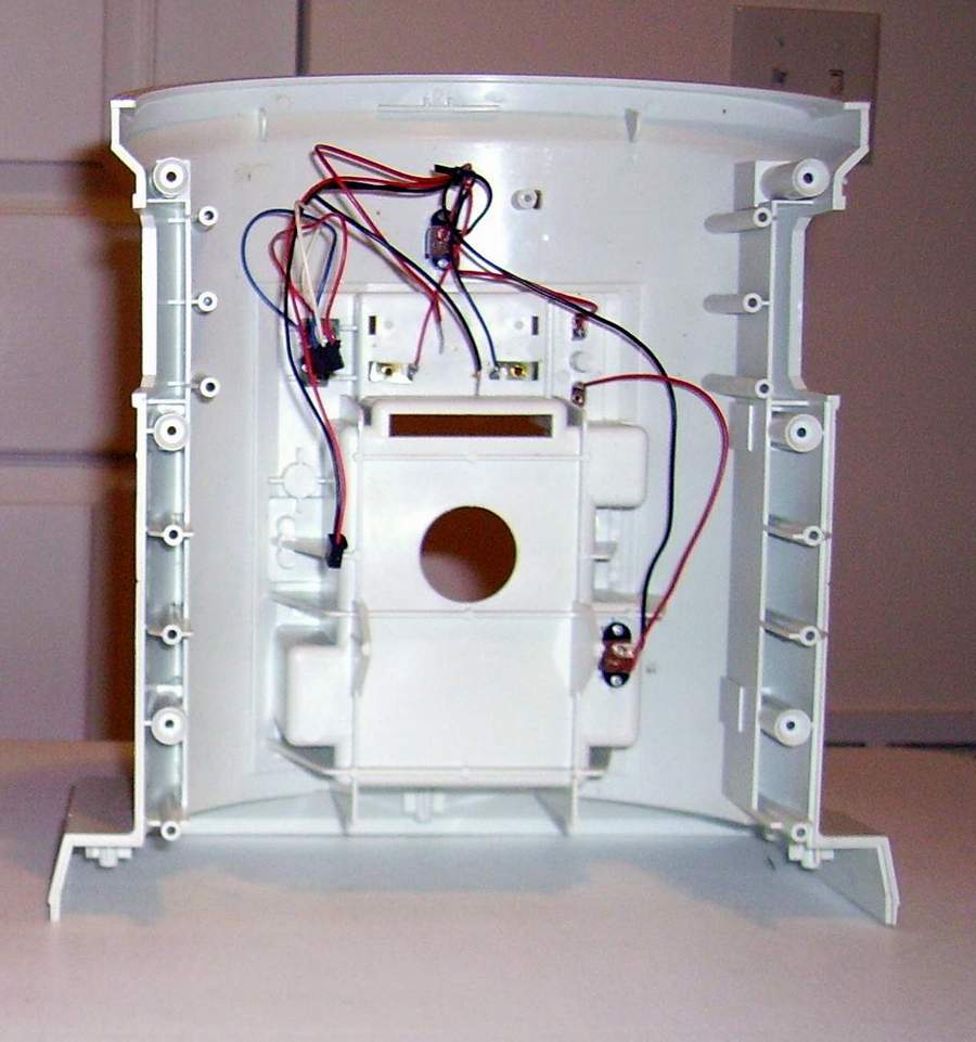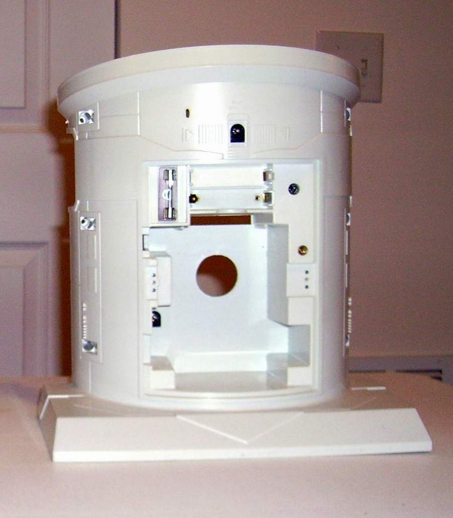 7. Turn the robot in the upright position.8. Remove the six screws from the back of the robot, and spread it apart slowly and very little (1 inch). (BE CAREFUL) 9. Seperate the front from the rear housing just enough to remove the head from the housing. |